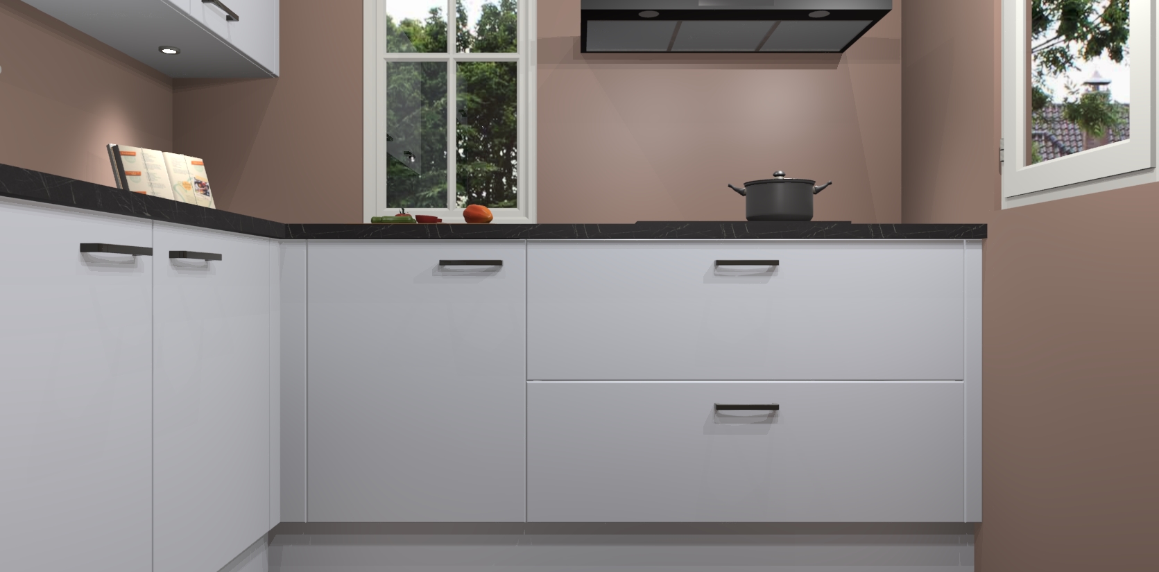 In deze box zijn alle kleuren verzameld van de deuren en werkbladen. Vraag de gratis kleurenbox aan en kijk thuis rustig verder!