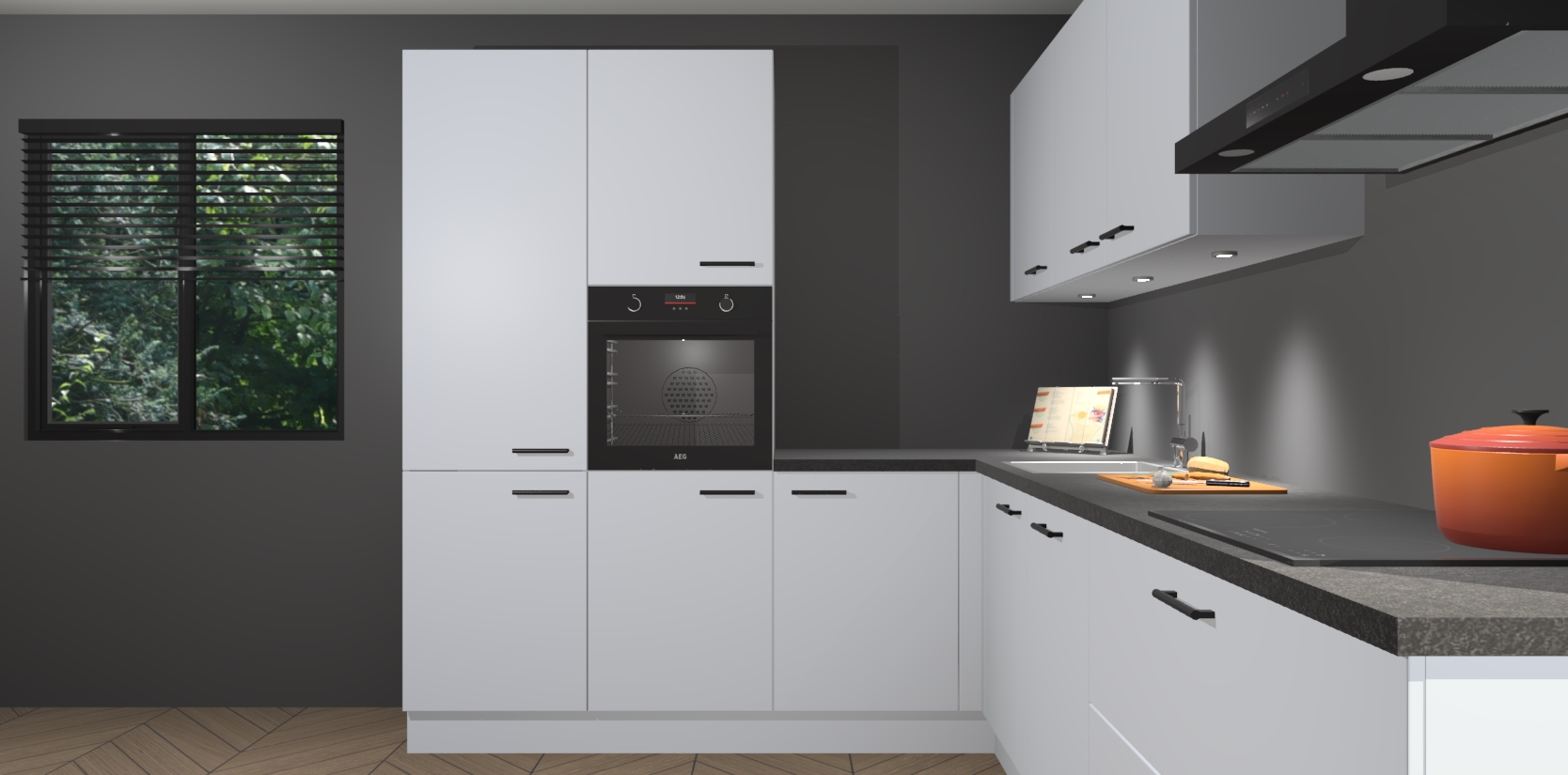 Maak kennis met de sneeuwwitte keuken Parla - de perfecte aanvulling voor uw moderne keuken! Ervaar tijdloos design, elegantie en een chique uitstraling met onze zwarte handgrepen, soft-close deuren en veel opbergruimte. Dit alles wordt aangeboden tegen een vaste lage prijs voor ongeëvenaarde Duitse keukenkwaliteit!