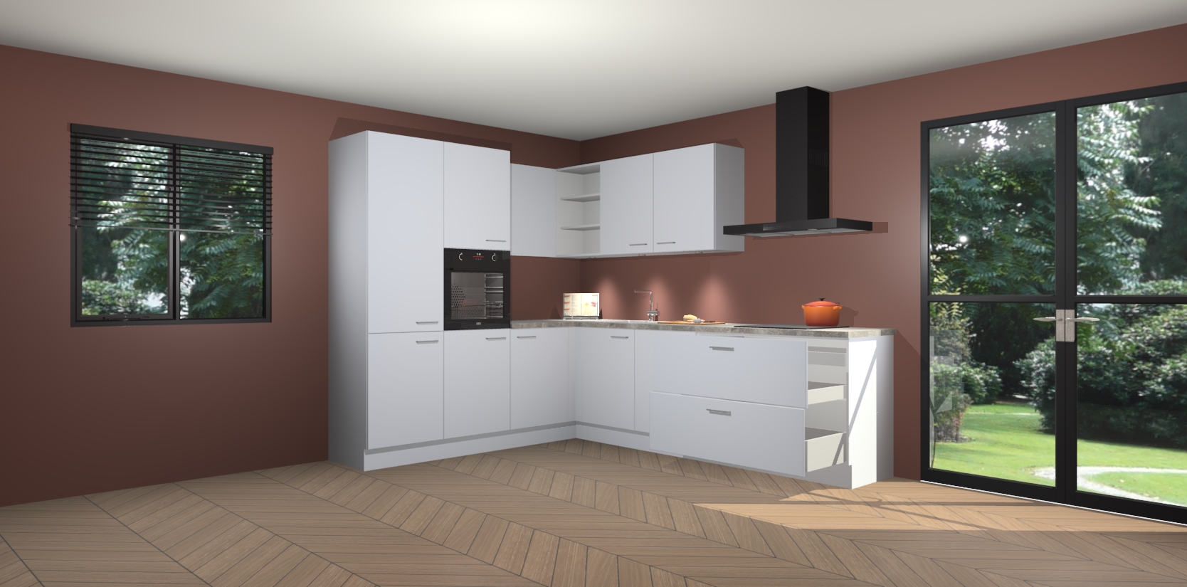 Maak kennis met de sneeuwwitte keuken Parla - de perfecte aanvulling voor uw moderne keuken! Ervaar tijdloos design, elegantie en een chique uitstraling met onze zwarte handgrepen, soft-close deuren en veel opbergruimte. Dit alles wordt aangeboden tegen een vaste lage prijs voor ongeëvenaarde Duitse keukenkwaliteit!