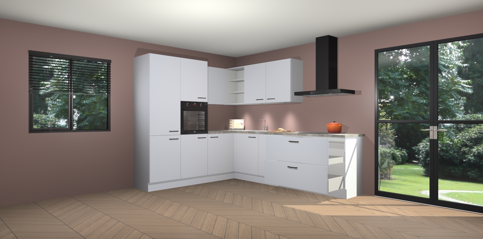 Maak kennis met de sneeuwwitte keuken Parla - de perfecte aanvulling voor uw moderne keuken! Ervaar tijdloos design, elegantie en een chique uitstraling met onze zwarte handgrepen, soft-close deuren en veel opbergruimte. Dit alles wordt aangeboden tegen een vaste lage prijs voor ongeëvenaarde Duitse keukenkwaliteit!