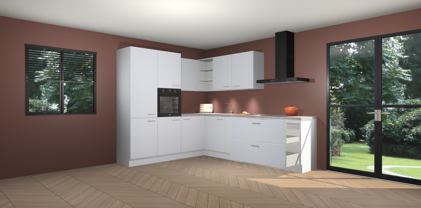 Maak kennis met de sneeuwwitte keuken Parla - de perfecte aanvulling voor uw moderne keuken! Ervaar tijdloos design, elegantie en een chique uitstraling met onze zwarte handgrepen, soft-close deuren en veel opbergruimte. Dit alles wordt aangeboden tegen een vaste lage prijs voor ongeëvenaarde Duitse keukenkwaliteit!