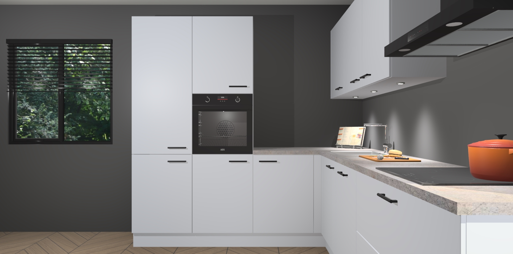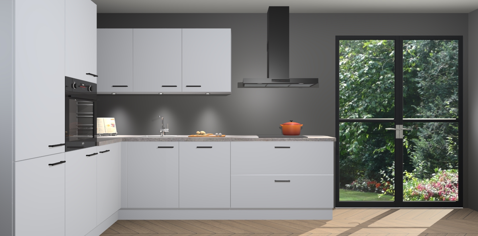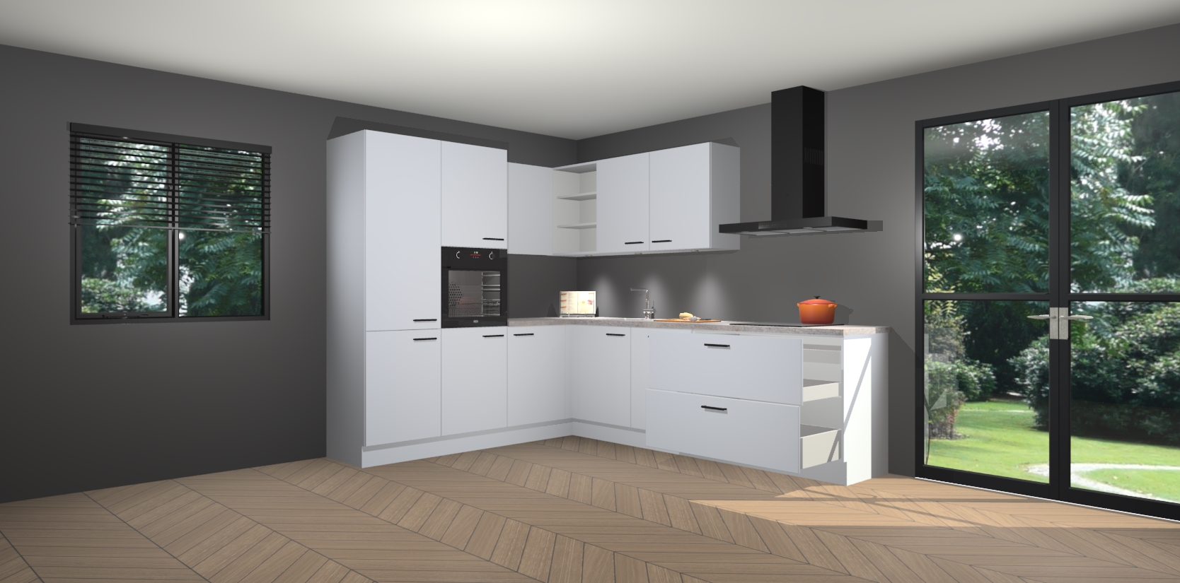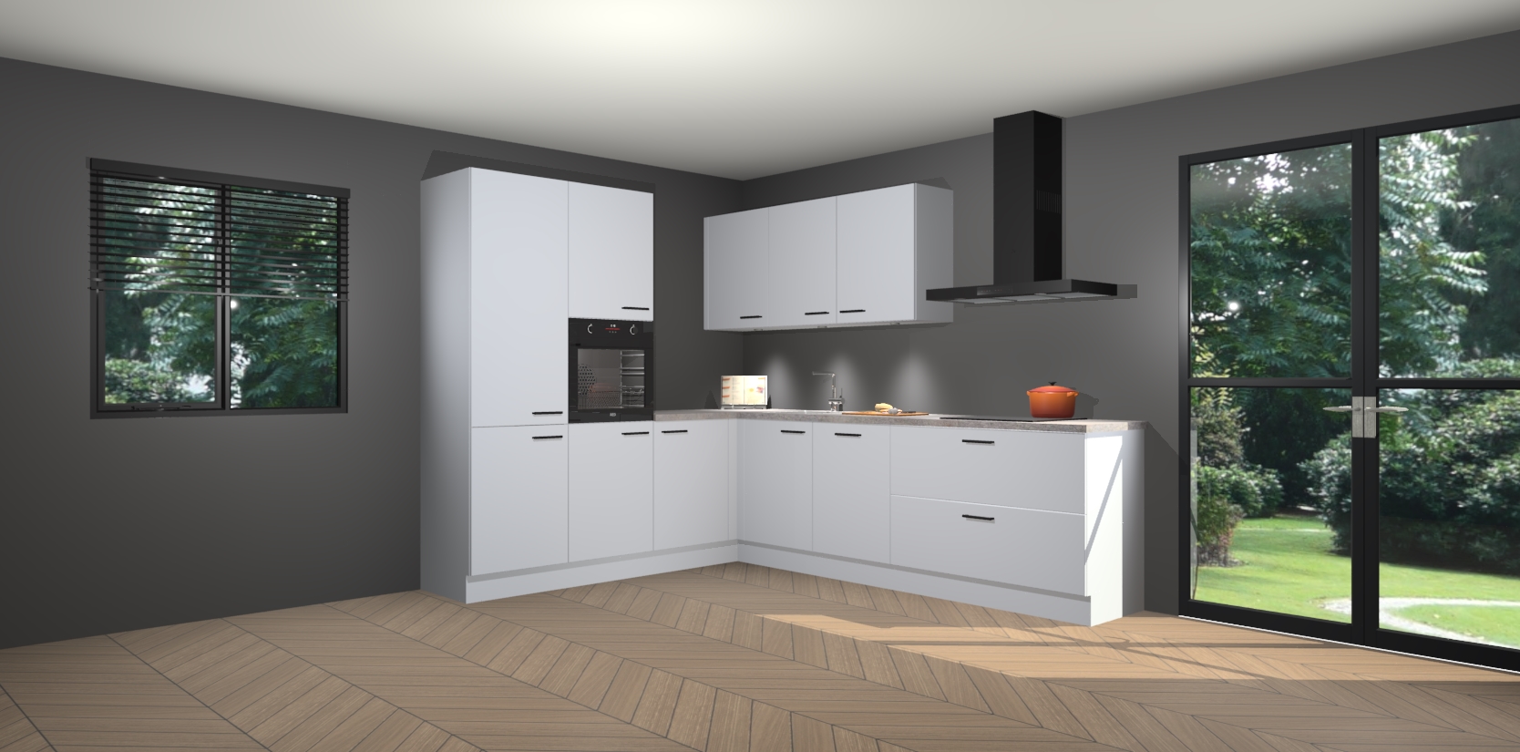 Maak kennis met de sneeuwwitte keuken Parla - de perfecte aanvulling voor uw moderne keuken! Ervaar tijdloos design, elegantie en een chique uitstraling met onze zwarte handgrepen, soft-close deuren en veel opbergruimte. Dit alles wordt aangeboden tegen een vaste lage prijs voor ongeëvenaarde Duitse keukenkwaliteit!