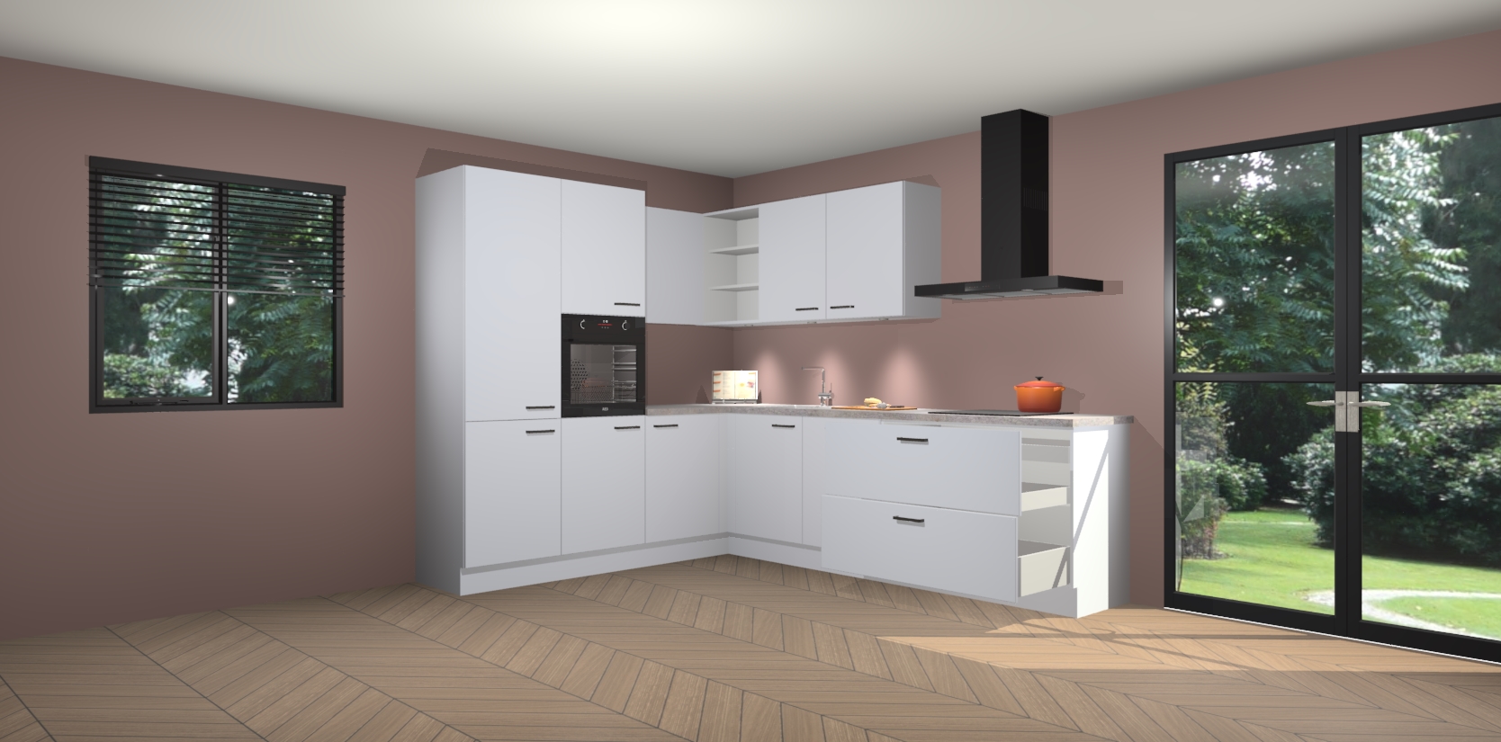 Maak kennis met de sneeuwwitte keuken Parla - de perfecte aanvulling voor uw moderne keuken! Ervaar tijdloos design, elegantie en een chique uitstraling met onze zwarte handgrepen, soft-close deuren en veel opbergruimte. Dit alles wordt aangeboden tegen een vaste lage prijs voor ongeëvenaarde Duitse keukenkwaliteit!