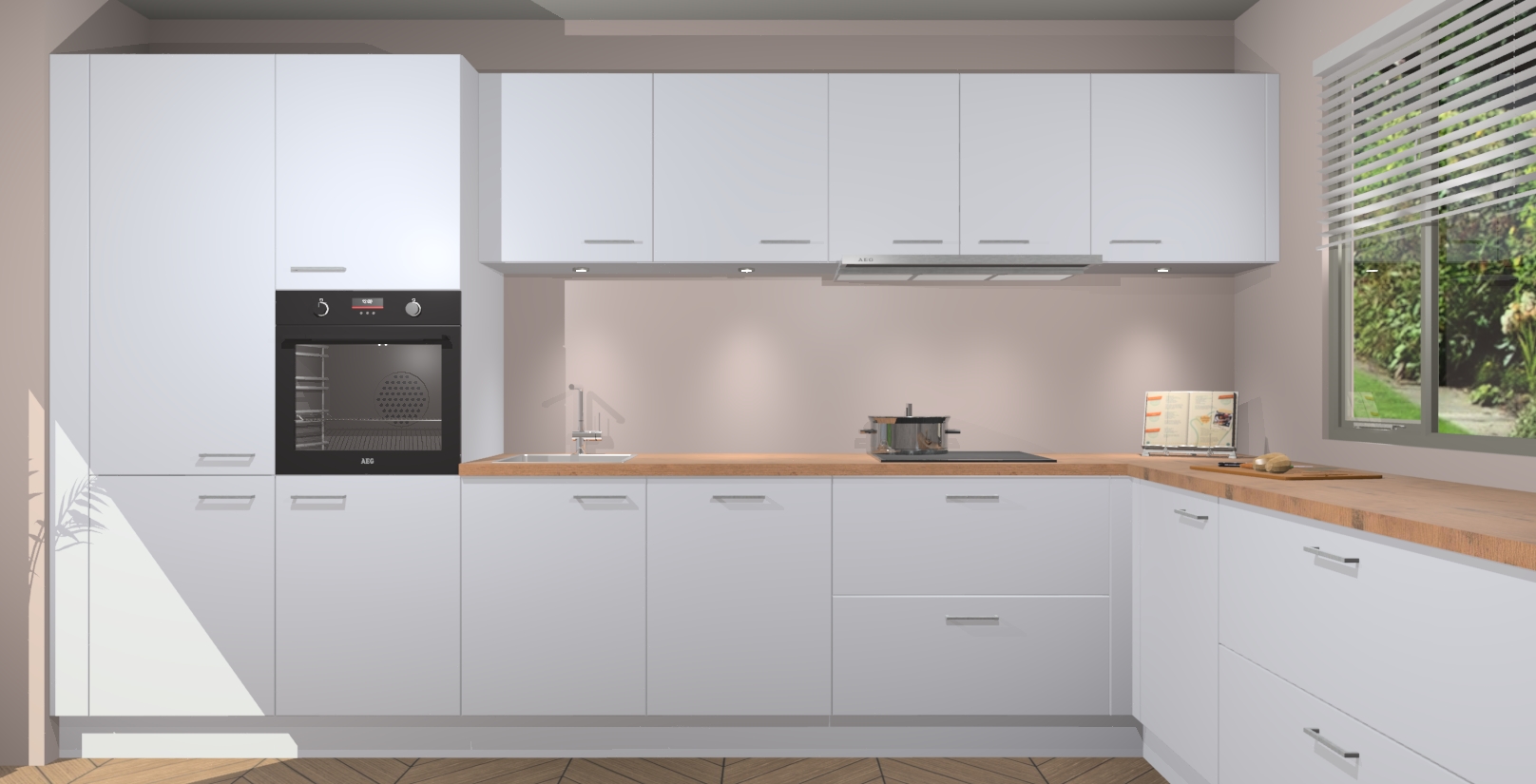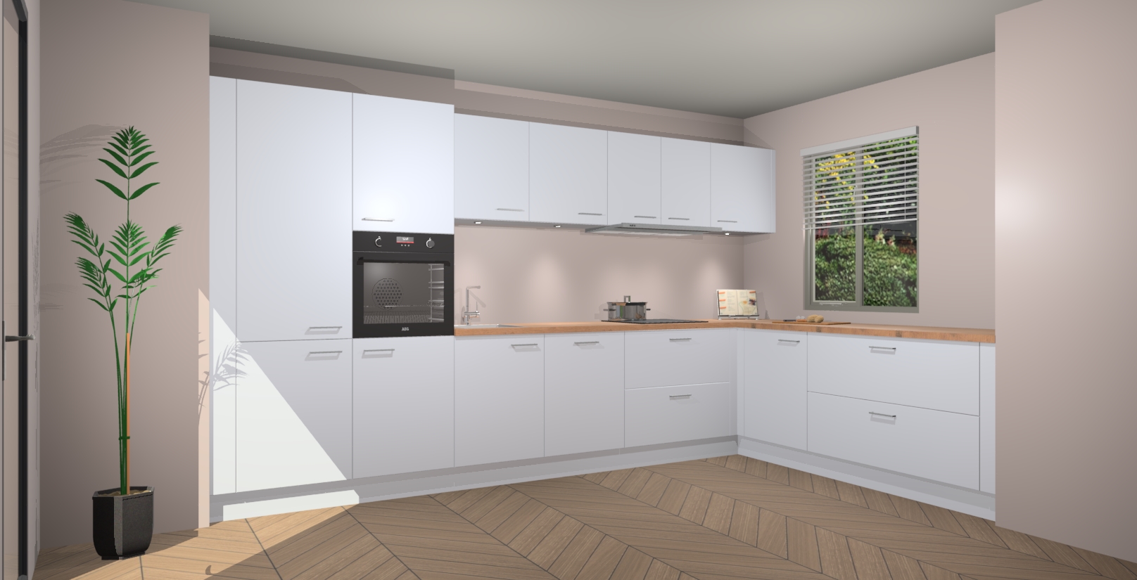Verwelkom de natuurlijke warmte van de Sneeuwwitte keuken Petten in uw huis. Deze prachtige hoekkeuken met zijn moderne design en warme houten look geeft u meer dan genoeg opbergruimte om uw comfortabel te voelen in uw keuken. Geniet van soft-close deuren die al uw gasten het gevoel zullen geven dat ze zich in een luxueuze ruimte bevinden.