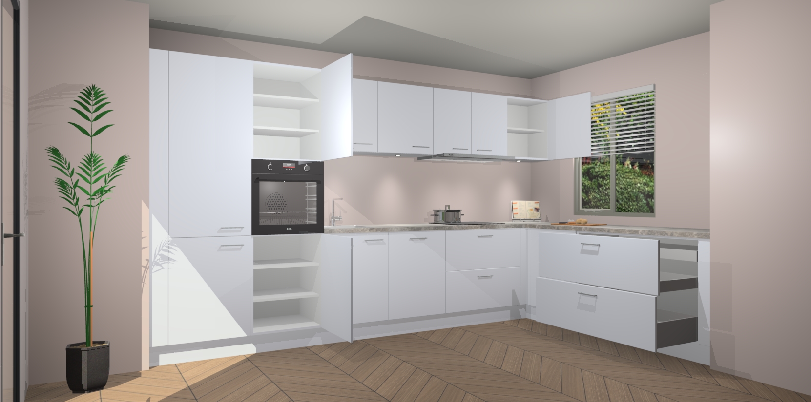 Verwelkom de natuurlijke warmte van de Sneeuwwitte keuken Petten in uw huis. Deze prachtige hoekkeuken met zijn moderne design en warme houten look geeft u meer dan genoeg opbergruimte om uw comfortabel te voelen in uw keuken. Geniet van soft-close deuren die al uw gasten het gevoel zullen geven dat ze zich in een luxueuze ruimte bevinden.