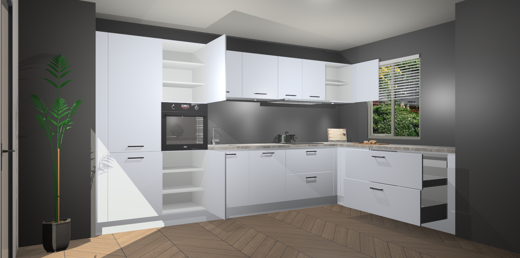 Inclusief plinten, stelpoten en werkblad