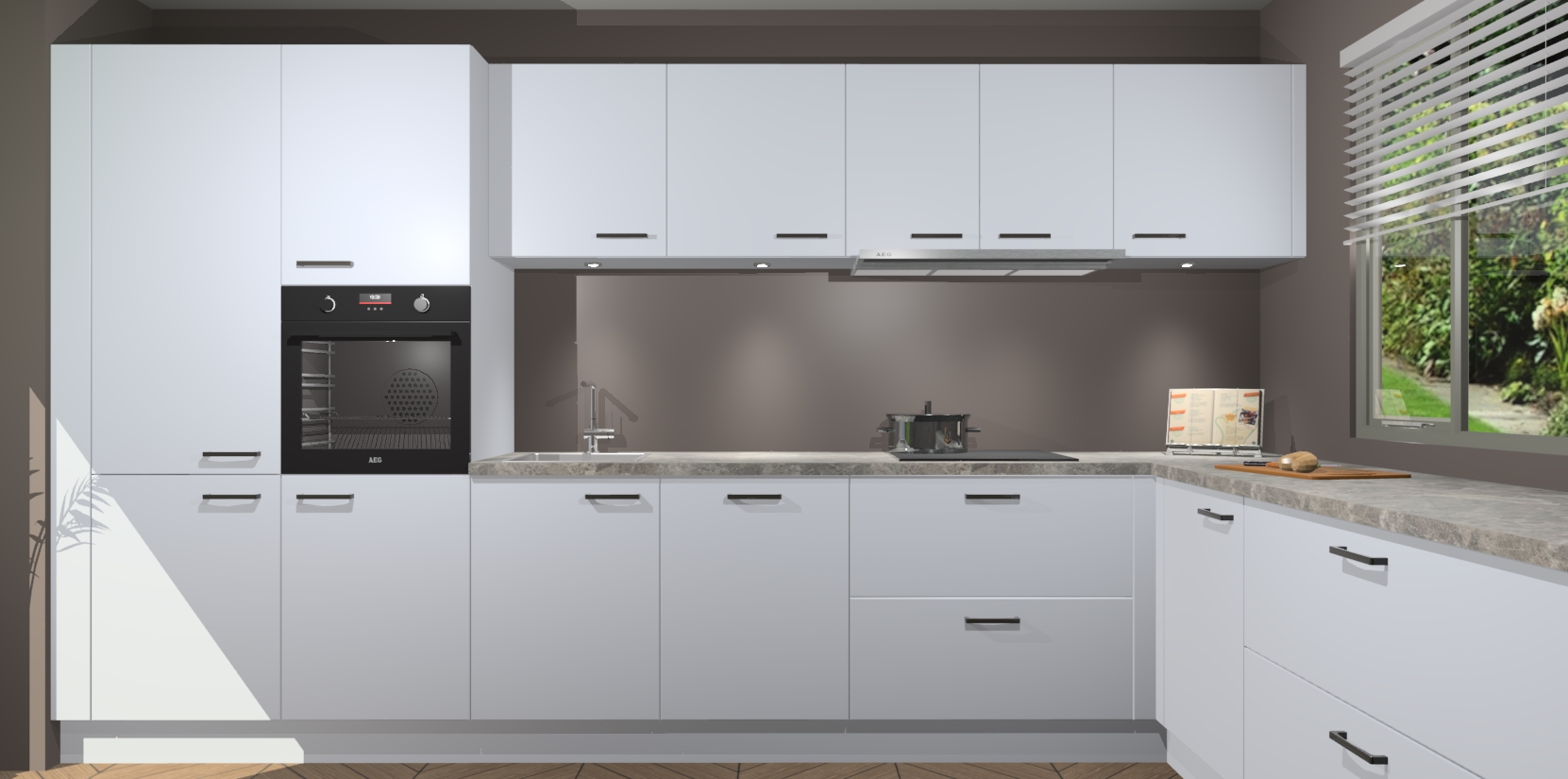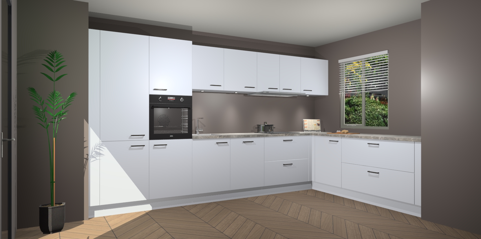 Verwelkom de natuurlijke warmte van de Sneeuwwitte keuken Petten in uw huis. Deze prachtige hoekkeuken met zijn moderne design en warme houten look geeft u meer dan genoeg opbergruimte om uw comfortabel te voelen in uw keuken. Geniet van soft-close deuren die al uw gasten het gevoel zullen geven dat ze zich in een luxueuze ruimte bevinden.