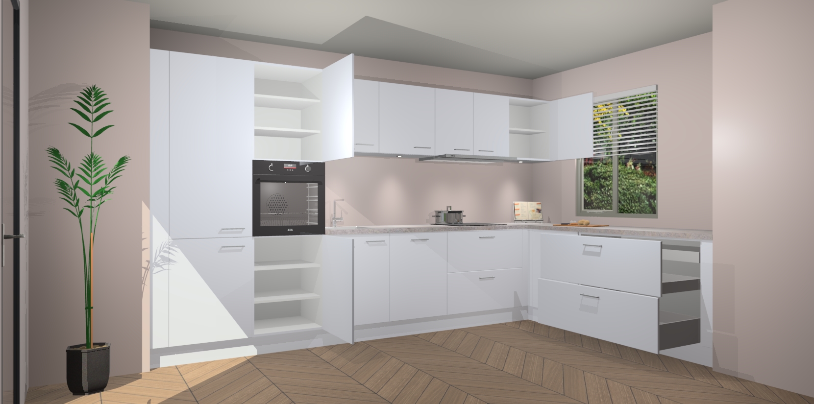 Verwelkom de natuurlijke warmte van de Sneeuwwitte keuken Petten in uw huis. Deze prachtige hoekkeuken met zijn moderne design en warme houten look geeft u meer dan genoeg opbergruimte om uw comfortabel te voelen in uw keuken. Geniet van soft-close deuren die al uw gasten het gevoel zullen geven dat ze zich in een luxueuze ruimte bevinden.