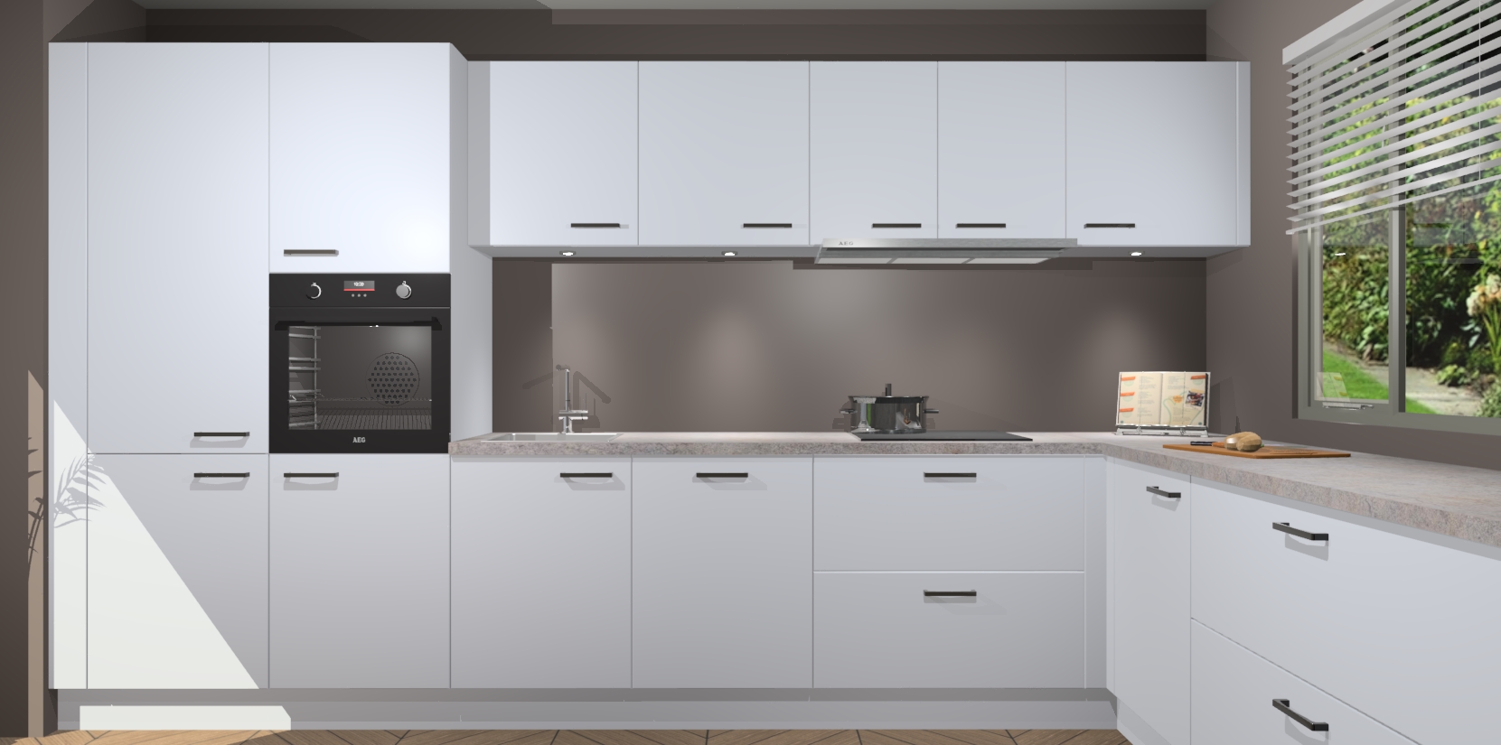 Verwelkom de natuurlijke warmte van de Sneeuwwitte keuken Petten in uw huis. Deze prachtige hoekkeuken met zijn moderne design en warme houten look geeft u meer dan genoeg opbergruimte om uw comfortabel te voelen in uw keuken. Geniet van soft-close deuren die al uw gasten het gevoel zullen geven dat ze zich in een luxueuze ruimte bevinden.