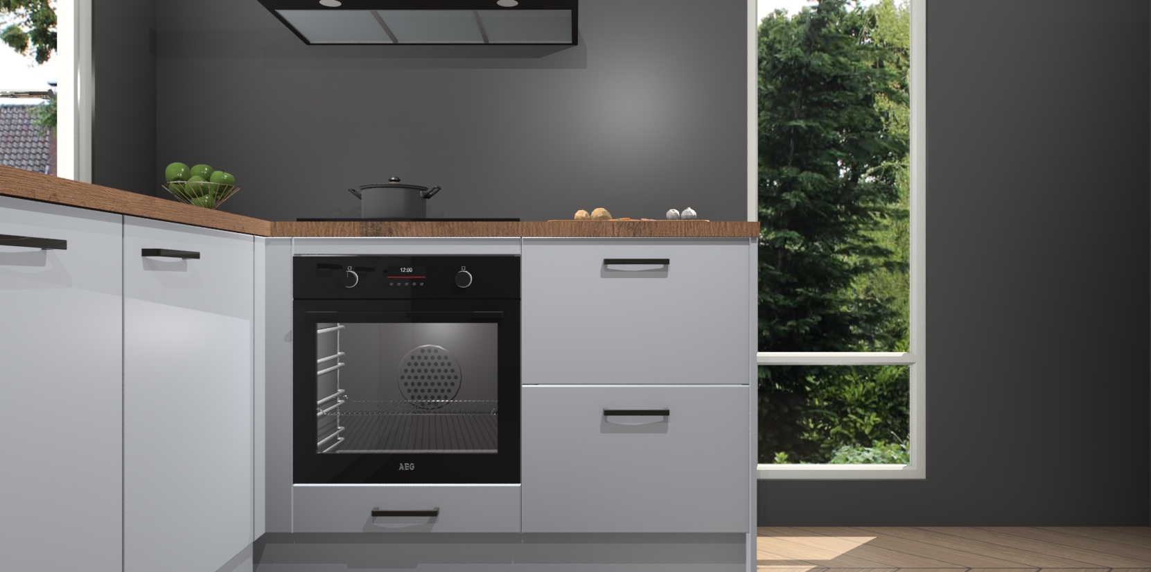Inclusief plinten, stelpoten en werkblad
