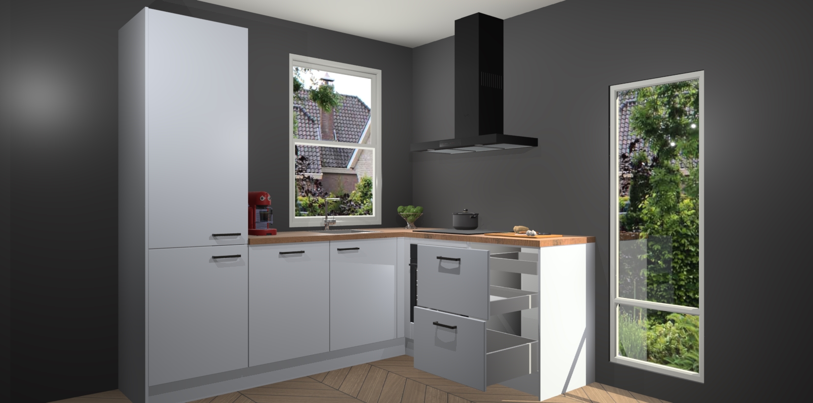 - Bij een hoekwerkblad zijn de hoeken in gevreesd en op maat gemaakt
