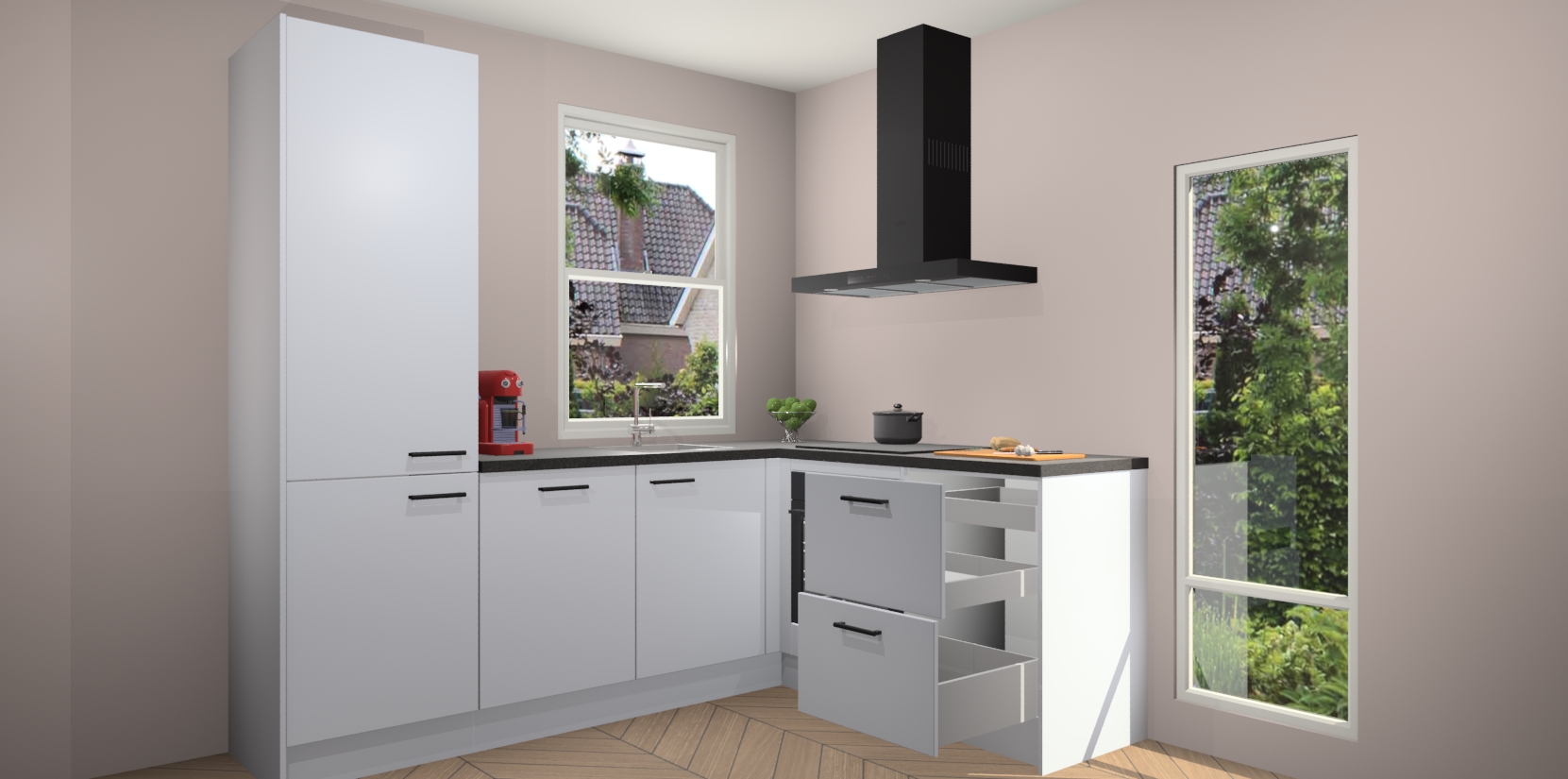 De prachtige Sneeuwwitte keuken Phuket is de perfecte keuze als u op zoek bent naar een moderne hoekkeuken met alle luxe en comfort die u kunt verwachten! De uitstraling in het houtlook-design draagt bij aan de warme sfeer die u nu al voelt wanneer u er naar kijkt. Heeft u genoeg van ouderwetse keukens? Probeer dan direct deze moderne, mooie hoekkeukens en laat iedereen verbluft achter!