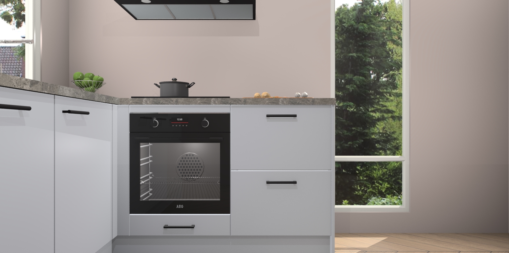 De Sneeuwwitte keuken Phuket heeft alles wat u maar kunt wensen. Niet alleen zijn er softclose deuren, maar ook 5 ingebouwde apparaten: een oven, inductiekookplaat, afzuigkap, vaatwasser en koelkast - waarbij u later gemakkelijk naar het AEG merk, van inductiekookplaat naar kookplaat met geïntegreerde afzuiging of van oven naar combimagnetron kunt upgraden. Dat alles tegen een vast laag tarief! Bovendien geeft de Sneeuwwitte keuken Phuket supersnelle levering van 7 weken. Echt iets voor u als u er niet op wilt wachten om het resultaat te zien in eigen keuken!