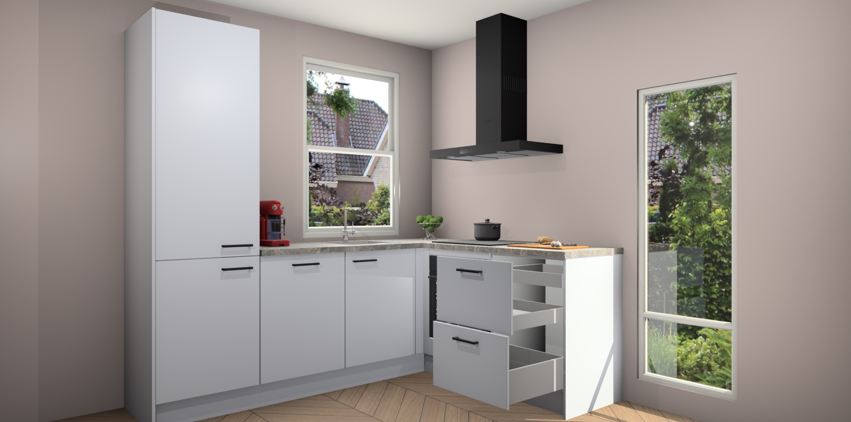 De prachtige Sneeuwwitte keuken Phuket is de perfecte keuze als u op zoek bent naar een moderne hoekkeuken met alle luxe en comfort die u kunt verwachten! De uitstraling in het houtlook-design draagt bij aan de warme sfeer die u nu al voelt wanneer u er naar kijkt. Heeft u genoeg van ouderwetse keukens? Probeer dan direct deze moderne, mooie hoekkeukens en laat iedereen verbluft achter!