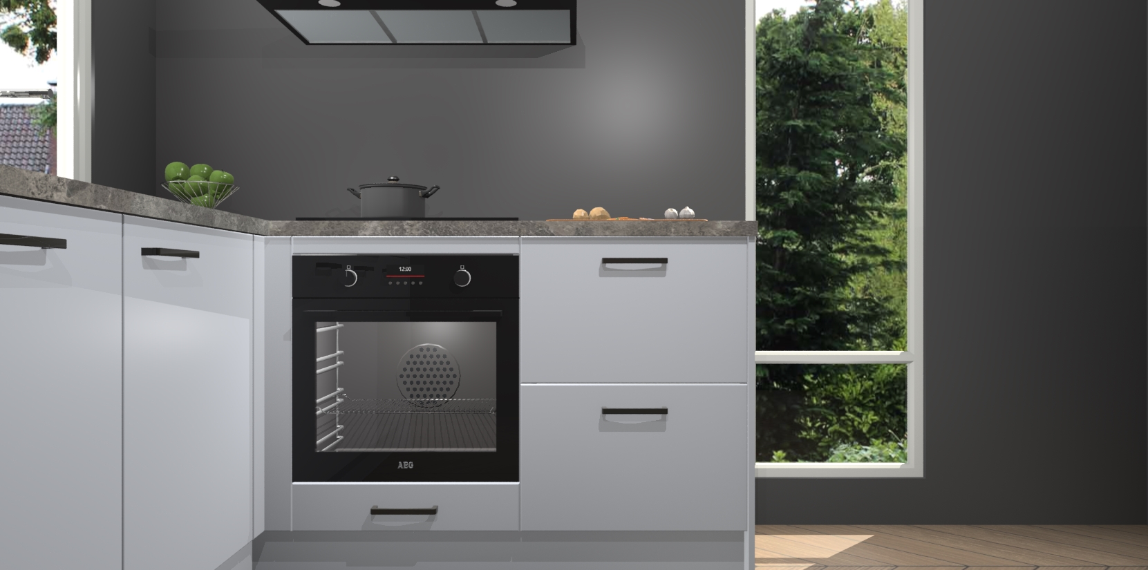 De Sneeuwwitte keuken Phuket heeft alles wat u maar kunt wensen. Niet alleen zijn er softclose deuren, maar ook 5 ingebouwde apparaten: een oven, inductiekookplaat, afzuigkap, vaatwasser en koelkast - waarbij u later gemakkelijk naar het AEG merk, van inductiekookplaat naar kookplaat met geïntegreerde afzuiging of van oven naar combimagnetron kunt upgraden. Dat alles tegen een vast laag tarief! Bovendien geeft de Sneeuwwitte keuken Phuket supersnelle levering van 7 weken. Echt iets voor u als u er niet op wilt wachten om het resultaat te zien in eigen keuken!