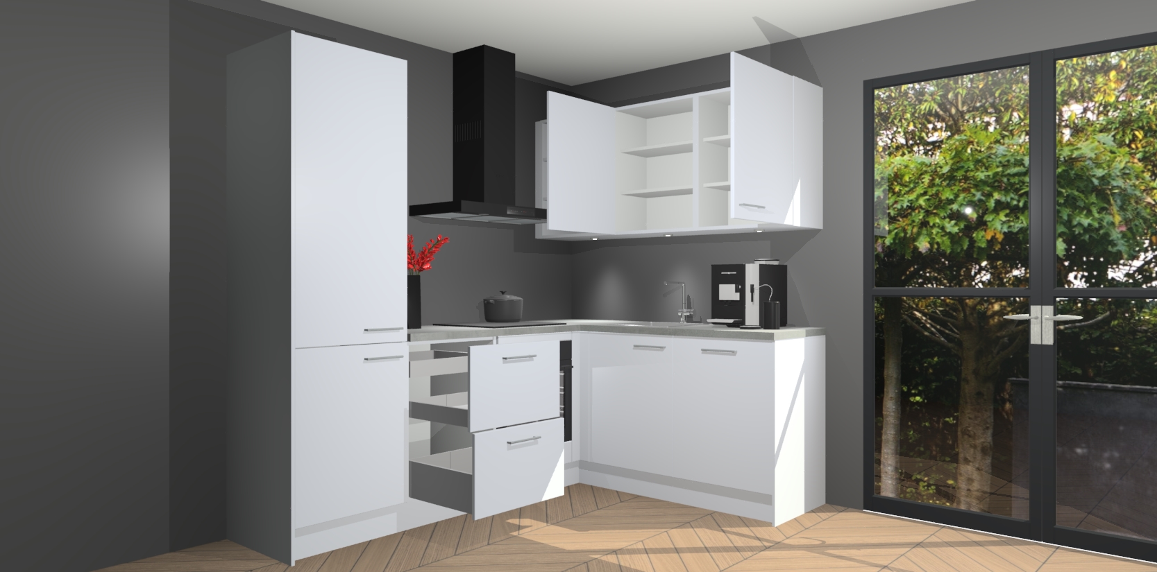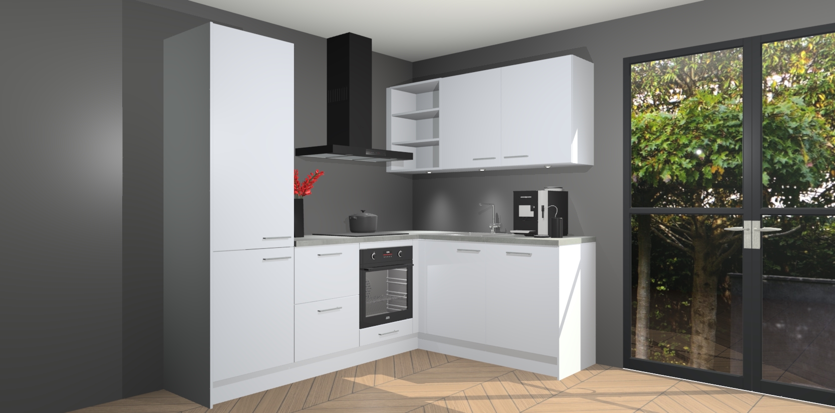 Wauw, dit is de Sneeuwwitte keuken Pilsen! U kunt gerust zeggen dat u elegantie combineert met functionaliteit met deze keuken. Met een modern en chique ontwerp is de keuken precies wat u nodig heeft om uw ruimte te verfraaien. De binnenzijde van de kasten is in dezelfde donkere kleur als de buitenzijde voor een uniforme look, compleet met softclose-kasten die stil sluiten.