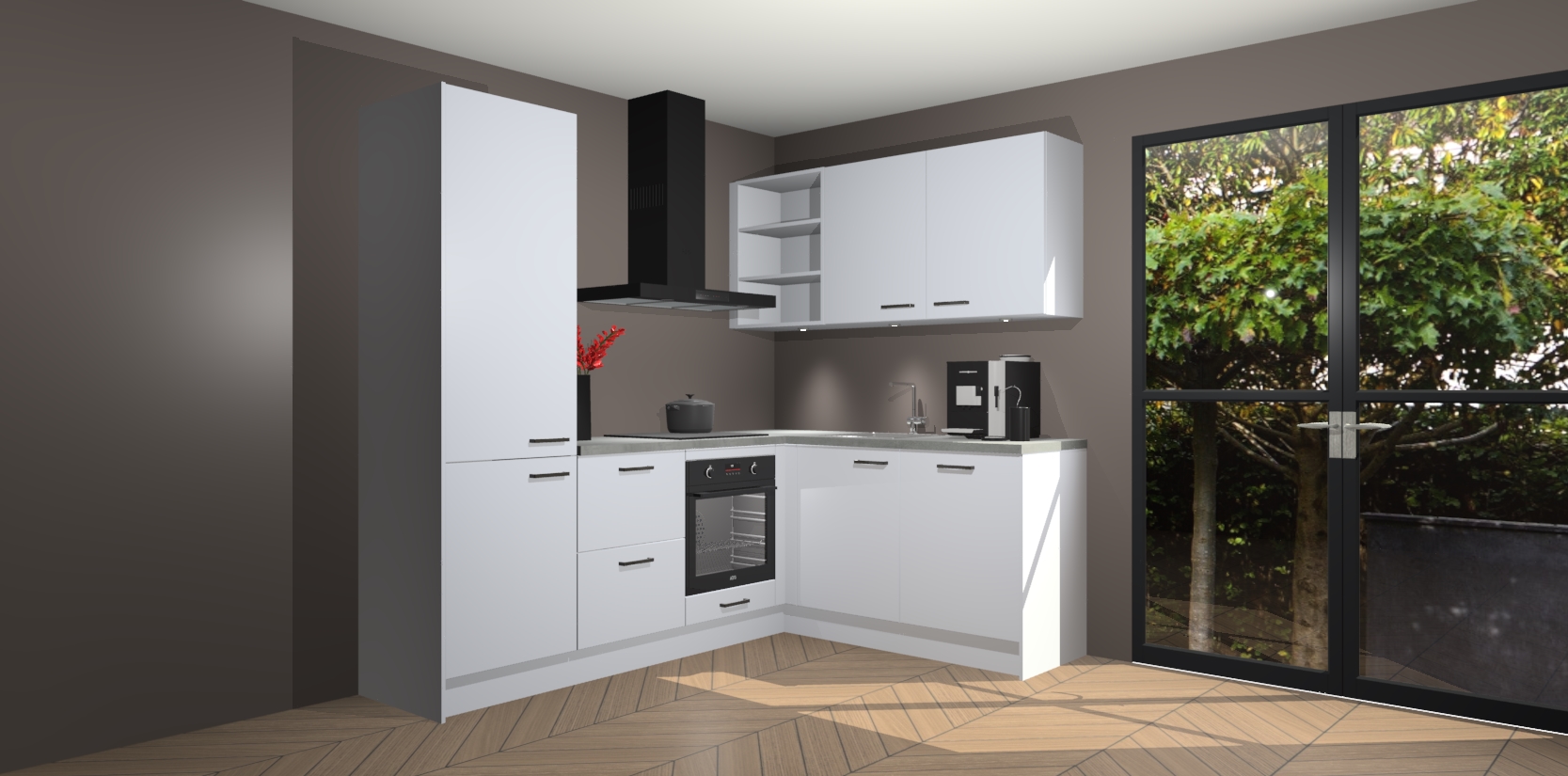 Wauw, dit is de Sneeuwwitte keuken Pilsen! U kunt gerust zeggen dat u elegantie combineert met functionaliteit met deze keuken. Met een modern en chique ontwerp is de keuken precies wat u nodig heeft om uw ruimte te verfraaien. De binnenzijde van de kasten is in dezelfde donkere kleur als de buitenzijde voor een uniforme look, compleet met softclose-kasten die stil sluiten.