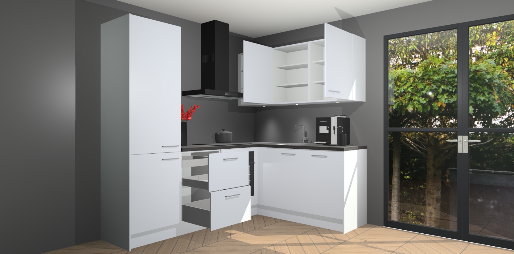 Wauw, dit is de Sneeuwwitte keuken Pilsen! U kunt gerust zeggen dat u elegantie combineert met functionaliteit met deze keuken. Met een modern en chique ontwerp is de keuken precies wat u nodig heeft om uw ruimte te verfraaien. De binnenzijde van de kasten is in dezelfde donkere kleur als de buitenzijde voor een uniforme look, compleet met softclose-kasten die stil sluiten.