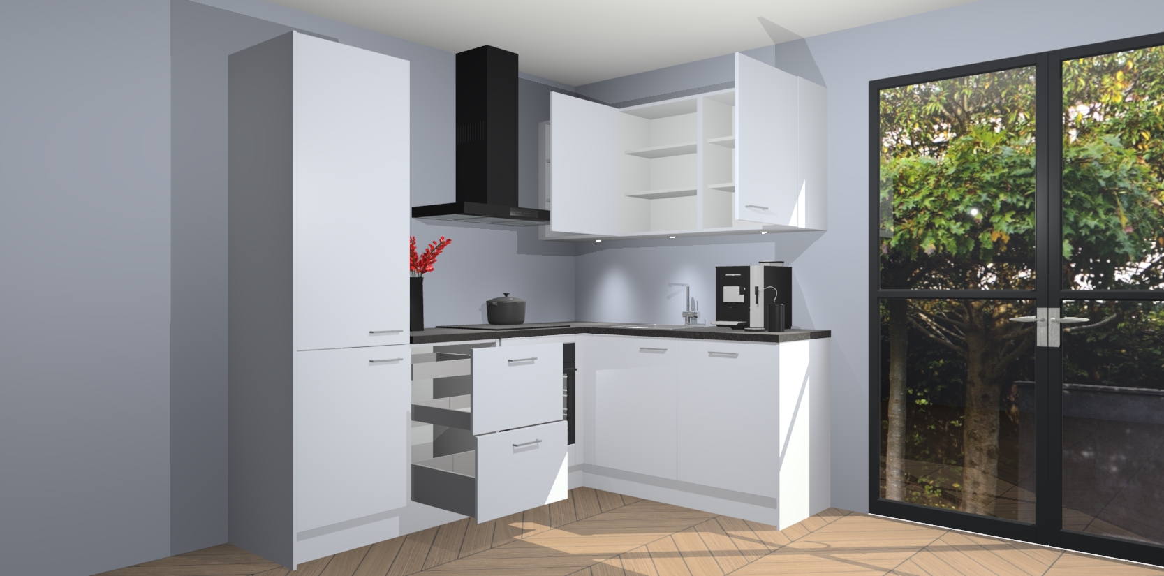 Wauw, dit is de Sneeuwwitte keuken Pilsen! U kunt gerust zeggen dat u elegantie combineert met functionaliteit met deze keuken. Met een modern en chique ontwerp is de keuken precies wat u nodig heeft om uw ruimte te verfraaien. De binnenzijde van de kasten is in dezelfde donkere kleur als de buitenzijde voor een uniforme look, compleet met softclose-kasten die stil sluiten.