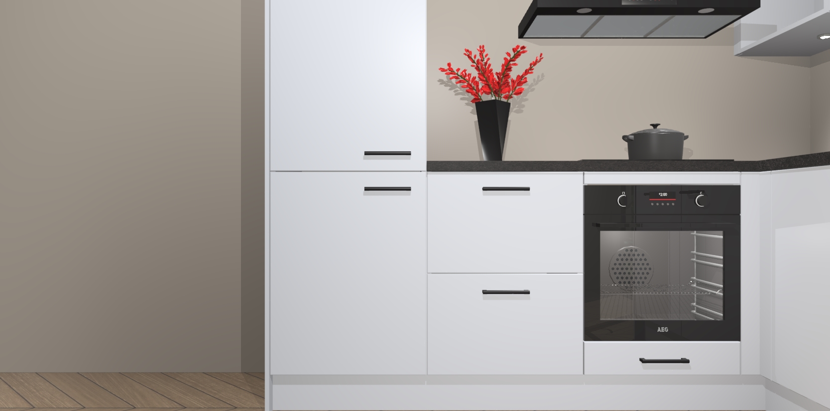 Wauw, dit is de Sneeuwwitte keuken Pilsen! U kunt gerust zeggen dat u elegantie combineert met functionaliteit met deze keuken. Met een modern en chique ontwerp is de keuken precies wat u nodig heeft om uw ruimte te verfraaien. De binnenzijde van de kasten is in dezelfde donkere kleur als de buitenzijde voor een uniforme look, compleet met softclose-kasten die stil sluiten.