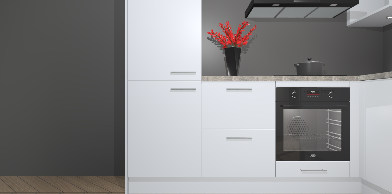 Wauw, dit is de Sneeuwwitte keuken Pilsen! U kunt gerust zeggen dat u elegantie combineert met functionaliteit met deze keuken. Met een modern en chique ontwerp is de keuken precies wat u nodig heeft om uw ruimte te verfraaien. De binnenzijde van de kasten is in dezelfde donkere kleur als de buitenzijde voor een uniforme look, compleet met softclose-kasten die stil sluiten.