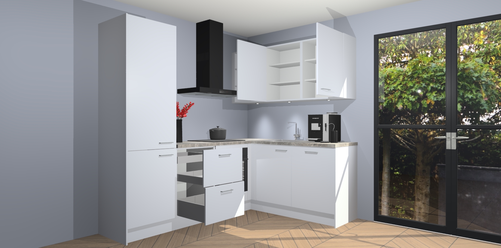 Wauw, dit is de Sneeuwwitte keuken Pilsen! U kunt gerust zeggen dat u elegantie combineert met functionaliteit met deze keuken. Met een modern en chique ontwerp is de keuken precies wat u nodig heeft om uw ruimte te verfraaien. De binnenzijde van de kasten is in dezelfde donkere kleur als de buitenzijde voor een uniforme look, compleet met softclose-kasten die stil sluiten.