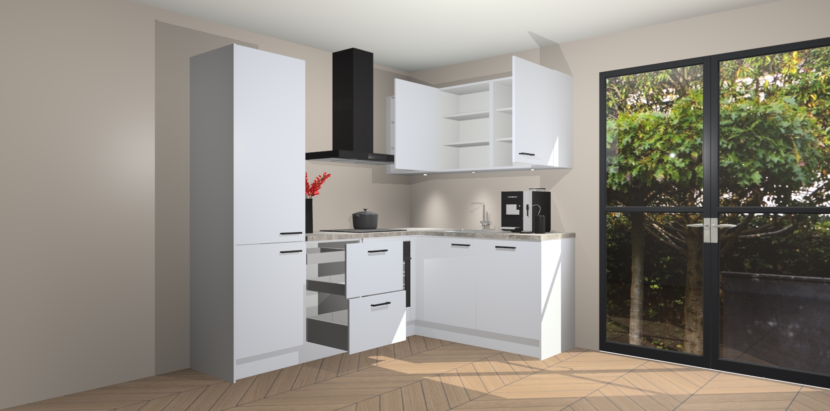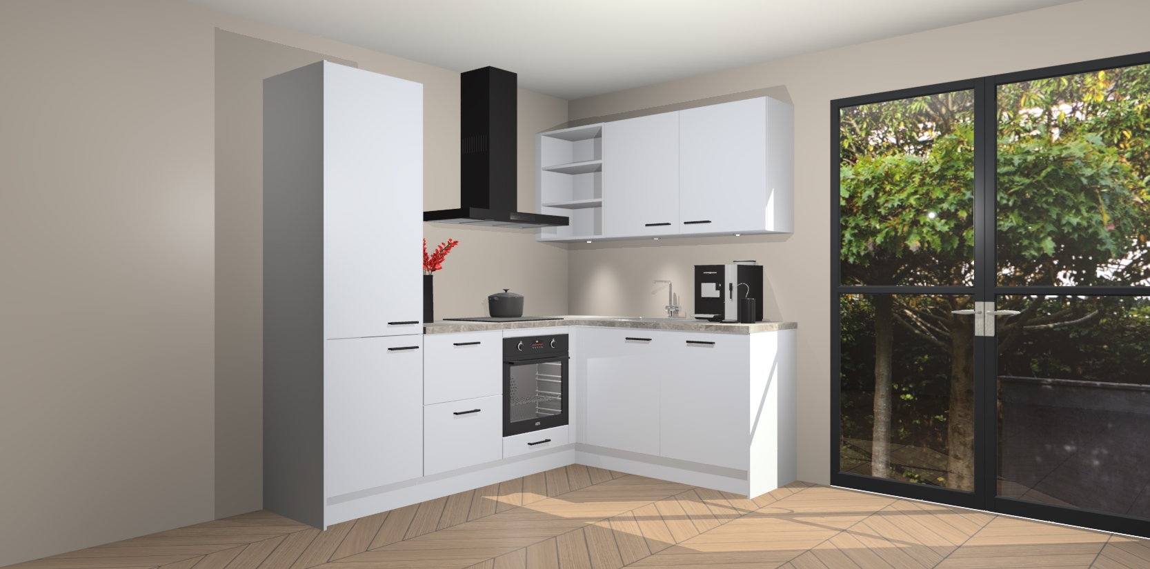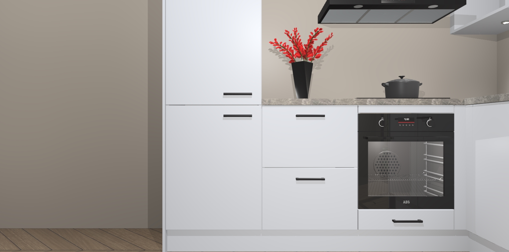 Wauw, dit is de Sneeuwwitte keuken Pilsen! U kunt gerust zeggen dat u elegantie combineert met functionaliteit met deze keuken. Met een modern en chique ontwerp is de keuken precies wat u nodig heeft om uw ruimte te verfraaien. De binnenzijde van de kasten is in dezelfde donkere kleur als de buitenzijde voor een uniforme look, compleet met softclose-kasten die stil sluiten.
