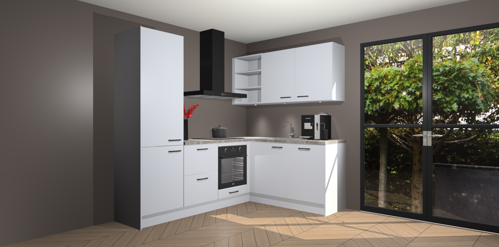Wauw, dit is de Sneeuwwitte keuken Pilsen! U kunt gerust zeggen dat u elegantie combineert met functionaliteit met deze keuken. Met een modern en chique ontwerp is de keuken precies wat u nodig heeft om uw ruimte te verfraaien. De binnenzijde van de kasten is in dezelfde donkere kleur als de buitenzijde voor een uniforme look, compleet met softclose-kasten die stil sluiten.