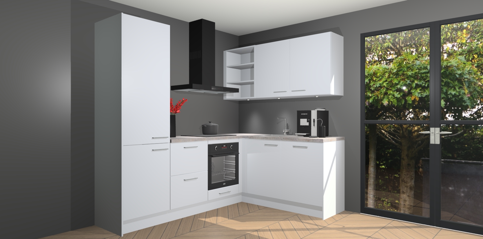 Wauw, dit is de Sneeuwwitte keuken Pilsen! U kunt gerust zeggen dat u elegantie combineert met functionaliteit met deze keuken. Met een modern en chique ontwerp is de keuken precies wat u nodig heeft om uw ruimte te verfraaien. De binnenzijde van de kasten is in dezelfde donkere kleur als de buitenzijde voor een uniforme look, compleet met softclose-kasten die stil sluiten.