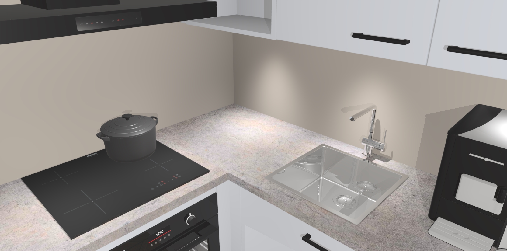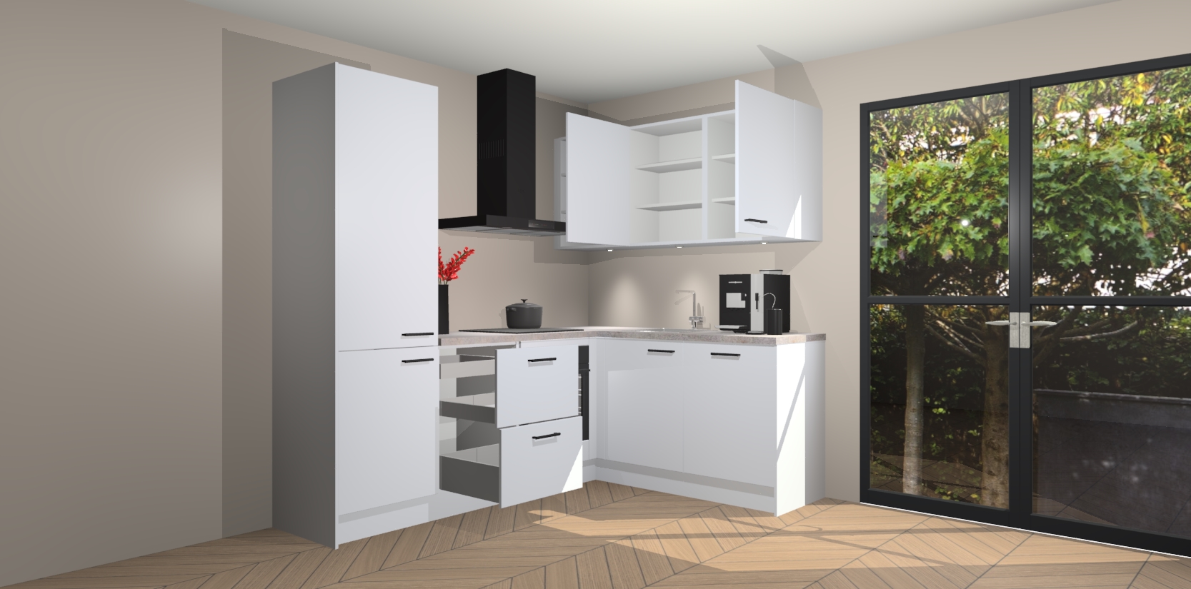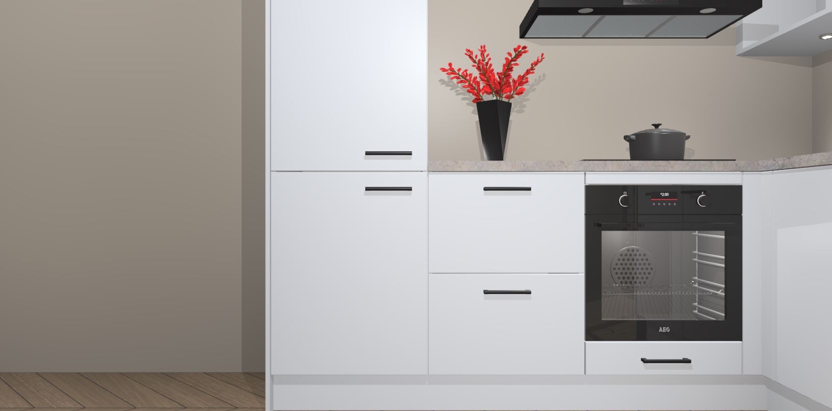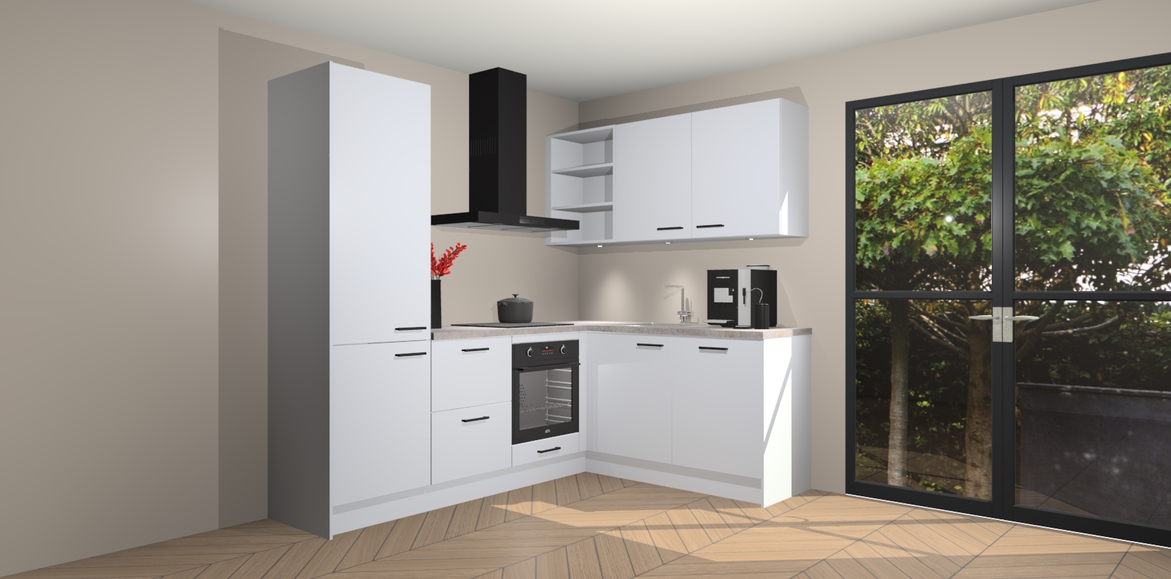 Wauw, dit is de Sneeuwwitte keuken Pilsen! U kunt gerust zeggen dat u elegantie combineert met functionaliteit met deze keuken. Met een modern en chique ontwerp is de keuken precies wat u nodig heeft om uw ruimte te verfraaien. De binnenzijde van de kasten is in dezelfde donkere kleur als de buitenzijde voor een uniforme look, compleet met softclose-kasten die stil sluiten.
