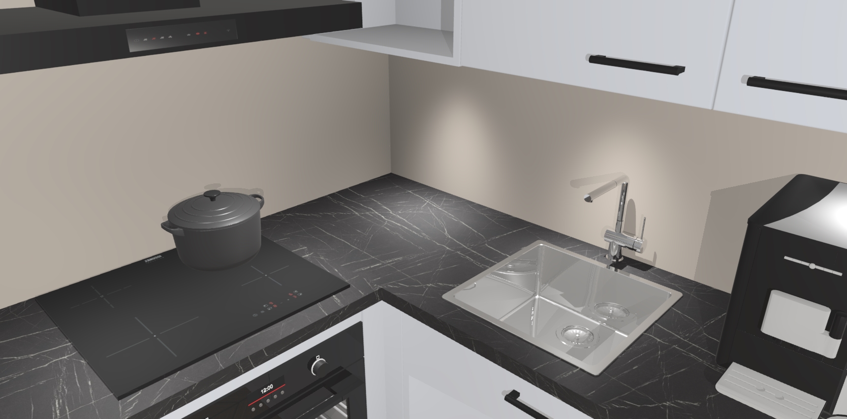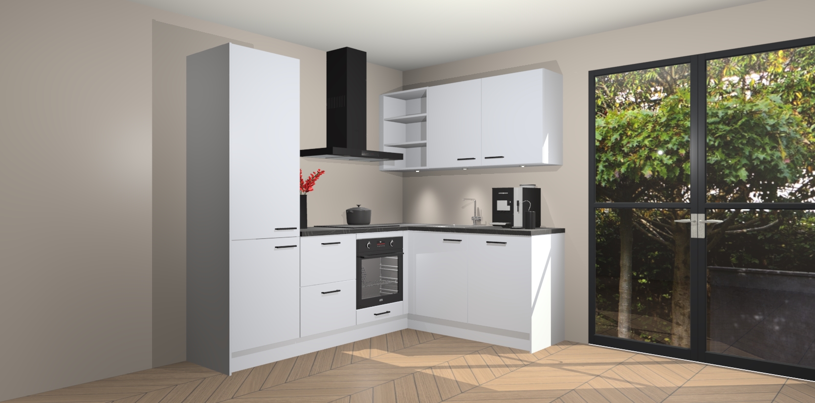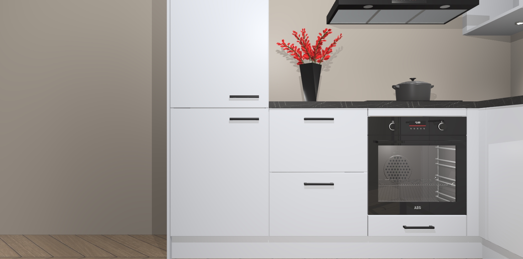 Wauw, dit is de Sneeuwwitte keuken Pilsen! U kunt gerust zeggen dat u elegantie combineert met functionaliteit met deze keuken. Met een modern en chique ontwerp is de keuken precies wat u nodig heeft om uw ruimte te verfraaien. De binnenzijde van de kasten is in dezelfde donkere kleur als de buitenzijde voor een uniforme look, compleet met softclose-kasten die stil sluiten.
