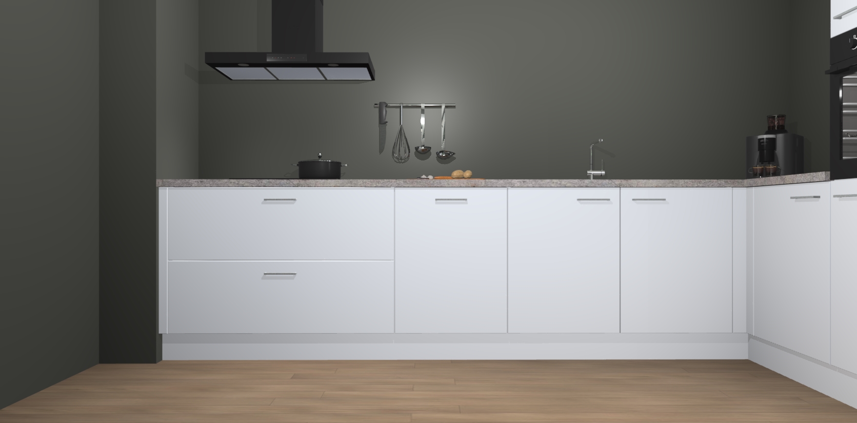 Welkom bij de Sneeuwwitte keuken Portland. Deze prachtige keuken zal de komende jaren het middelpunt van de belangstelling in uw huis zijn. Uitgerust met vijf inbouwapparaten komt u nooit kookgereedschap tekort. Bovendien geeft de warme houtlook elke ruimte een uitnodigende en tijdloze uitstraling.