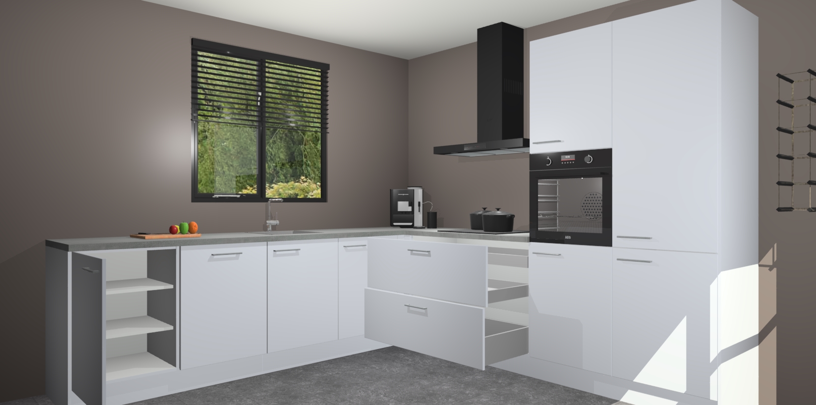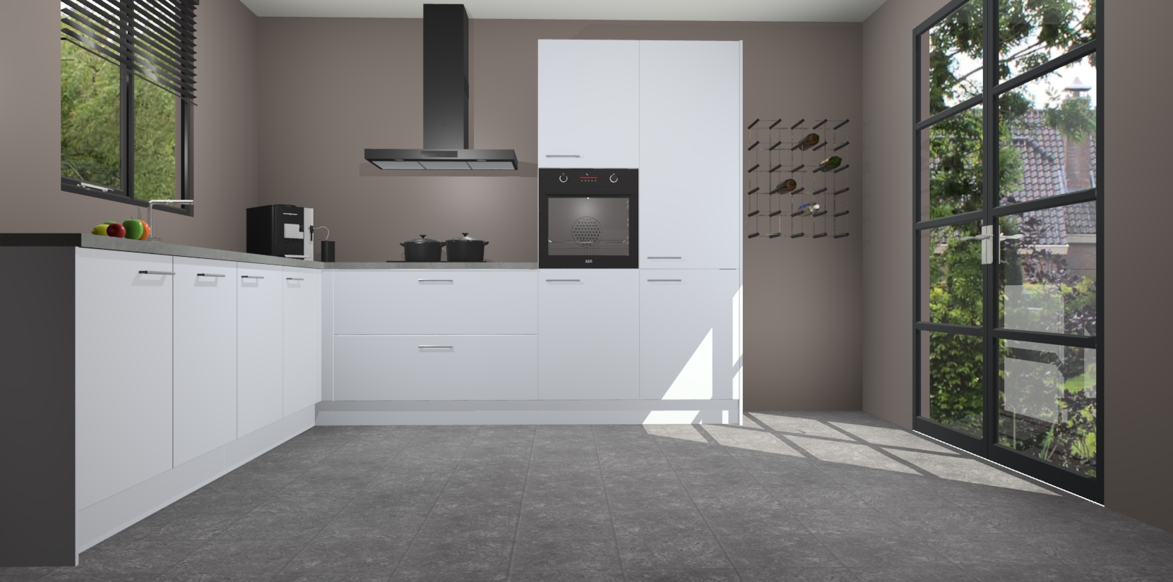 De Sneeuwwitte keuken Porto heeft 5 ingebouwde apparaten - een oven, inductiekookplaat, afzuigkap, vaatwasser en koelkast - waarmee u in een handomdraai heerlijke gerechten bereidt. Soft-close deuren zorgen voor nog meer functionaliteit en gemak. En dit alles voor een onverslaanbaar vaste prijs. En als u nu bestelt, duurt de levering maar 7 weken! Wat nog ongelooflijker is, is dat onze kasten voor gemonteerd worden geleverd.