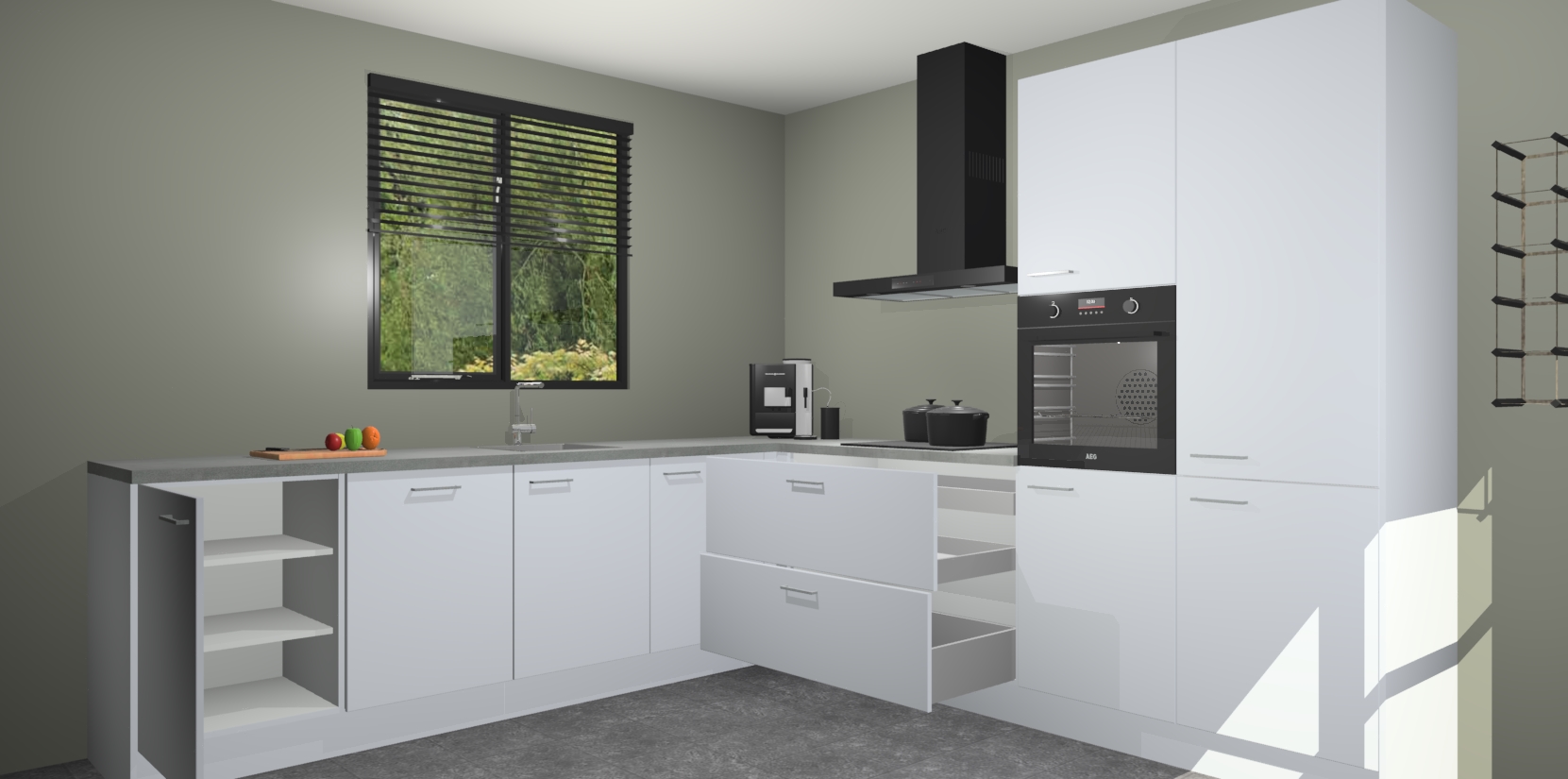 De Sneeuwwitte keuken Porto heeft 5 ingebouwde apparaten - een oven, inductiekookplaat, afzuigkap, vaatwasser en koelkast - waarmee u in een handomdraai heerlijke gerechten bereidt. Soft-close deuren zorgen voor nog meer functionaliteit en gemak. En dit alles voor een onverslaanbaar vaste prijs. En als u nu bestelt, duurt de levering maar 7 weken! Wat nog ongelooflijker is, is dat onze kasten voor gemonteerd worden geleverd.