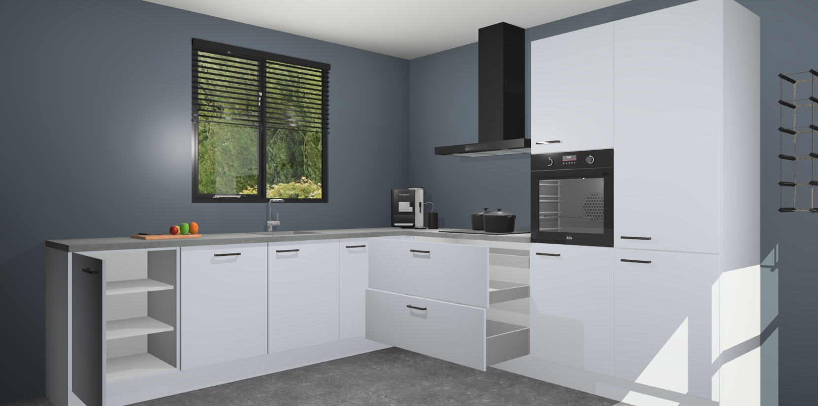 De Sneeuwwitte keuken Porto heeft 5 ingebouwde apparaten - een oven, inductiekookplaat, afzuigkap, vaatwasser en koelkast - waarmee u in een handomdraai heerlijke gerechten bereidt. Soft-close deuren zorgen voor nog meer functionaliteit en gemak. En dit alles voor een onverslaanbaar vaste prijs. En als u nu bestelt, duurt de levering maar 7 weken! Wat nog ongelooflijker is, is dat onze kasten voor gemonteerd worden geleverd.