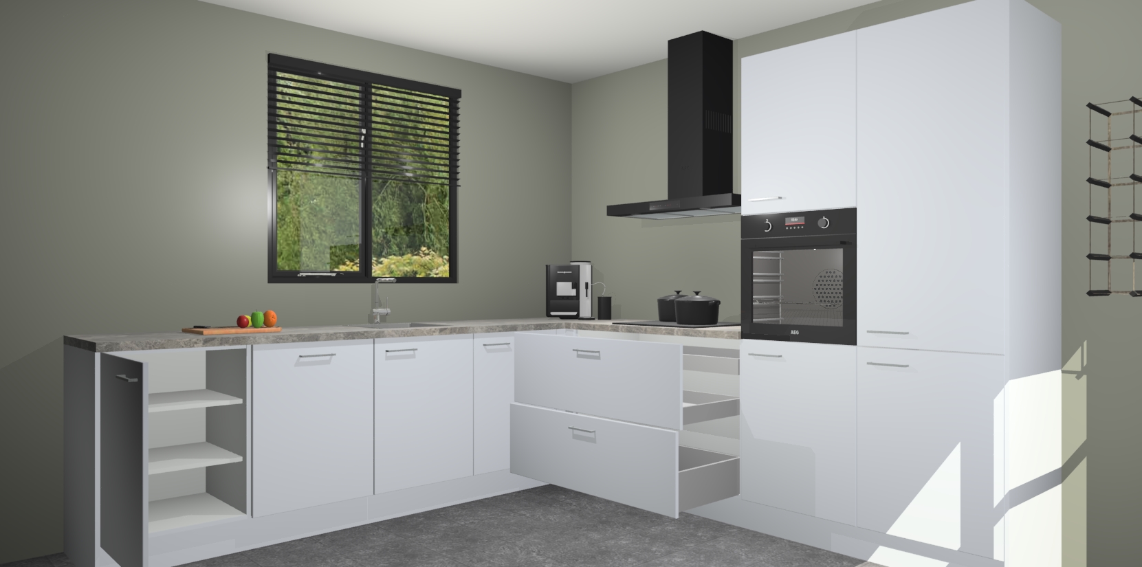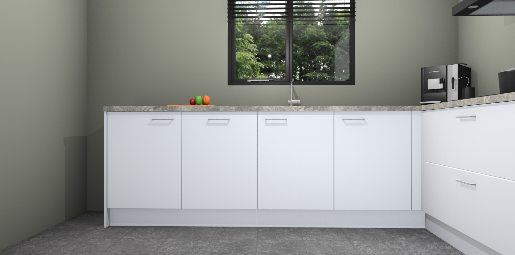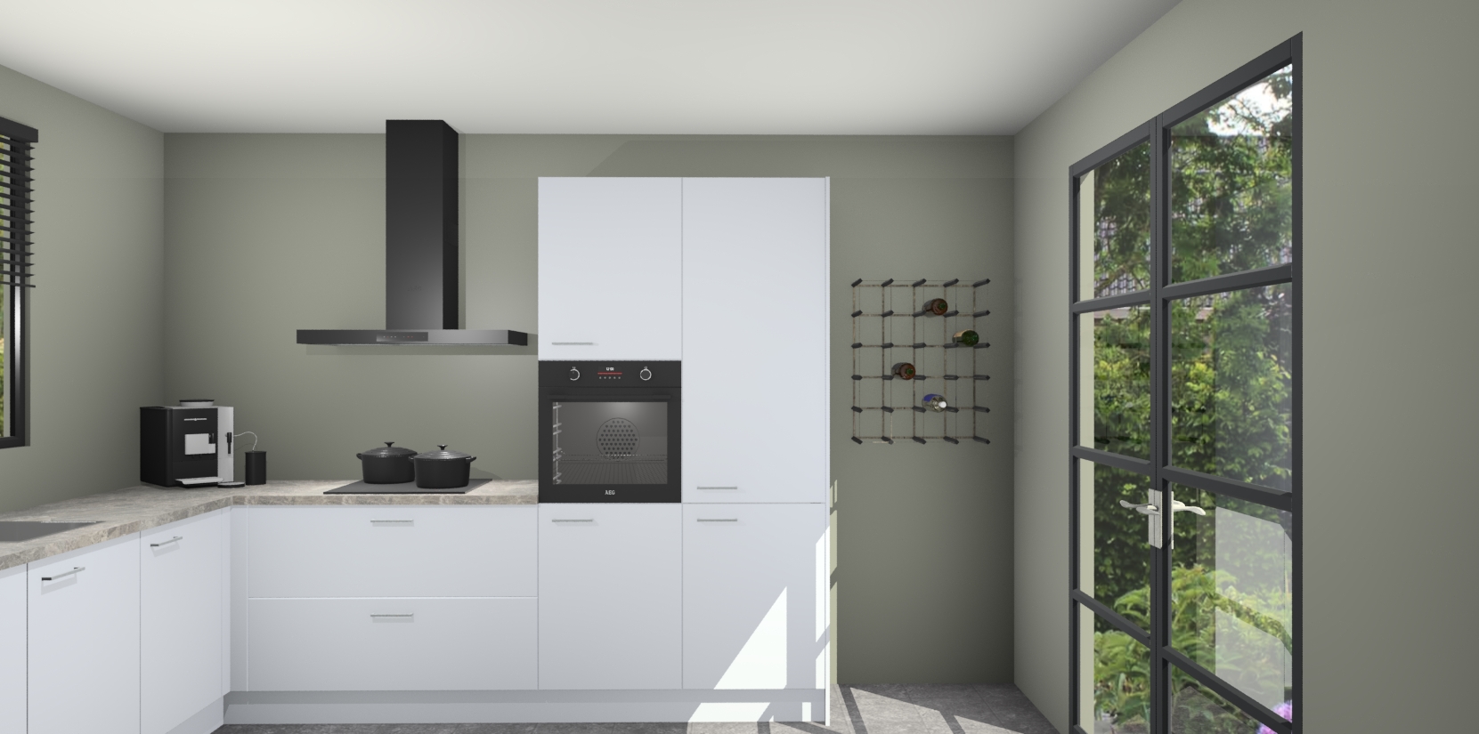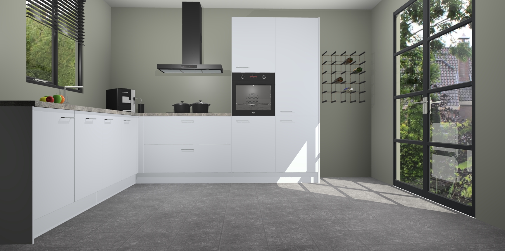 De Sneeuwwitte keuken Porto heeft 5 ingebouwde apparaten - een oven, inductiekookplaat, afzuigkap, vaatwasser en koelkast - waarmee u in een handomdraai heerlijke gerechten bereidt. Soft-close deuren zorgen voor nog meer functionaliteit en gemak. En dit alles voor een onverslaanbaar vaste prijs. En als u nu bestelt, duurt de levering maar 7 weken! Wat nog ongelooflijker is, is dat onze kasten voor gemonteerd worden geleverd.