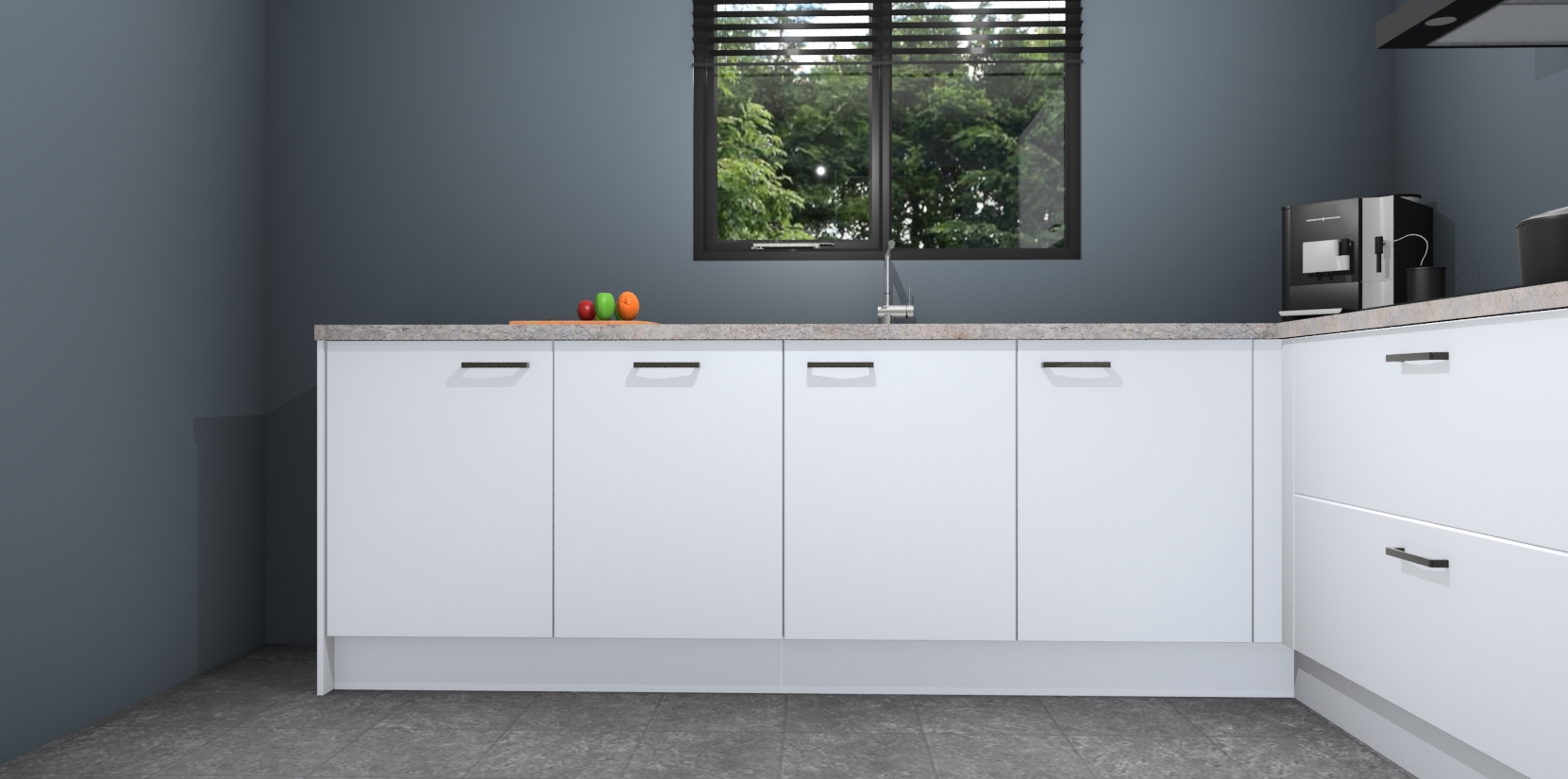 De Sneeuwwitte keuken Porto heeft 5 ingebouwde apparaten - een oven, inductiekookplaat, afzuigkap, vaatwasser en koelkast - waarmee u in een handomdraai heerlijke gerechten bereidt. Soft-close deuren zorgen voor nog meer functionaliteit en gemak. En dit alles voor een onverslaanbaar vaste prijs. En als u nu bestelt, duurt de levering maar 7 weken! Wat nog ongelooflijker is, is dat onze kasten voor gemonteerd worden geleverd.