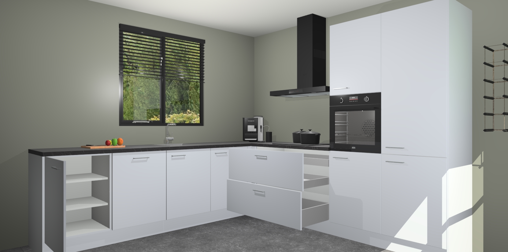 De Sneeuwwitte keuken Porto heeft 5 ingebouwde apparaten - een oven, inductiekookplaat, afzuigkap, vaatwasser en koelkast - waarmee u in een handomdraai heerlijke gerechten bereidt. Soft-close deuren zorgen voor nog meer functionaliteit en gemak. En dit alles voor een onverslaanbaar vaste prijs. En als u nu bestelt, duurt de levering maar 7 weken! Wat nog ongelooflijker is, is dat onze kasten voor gemonteerd worden geleverd.