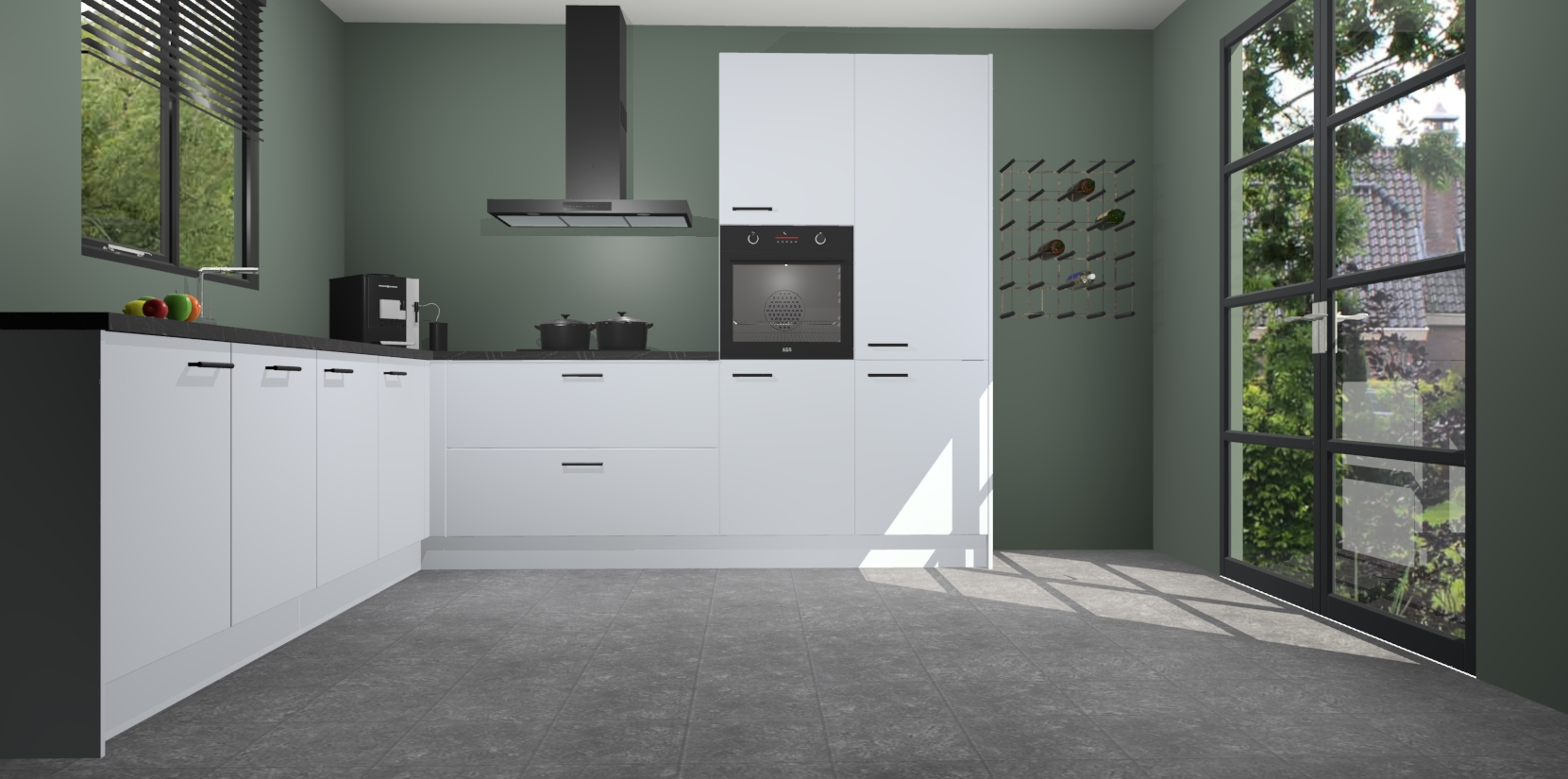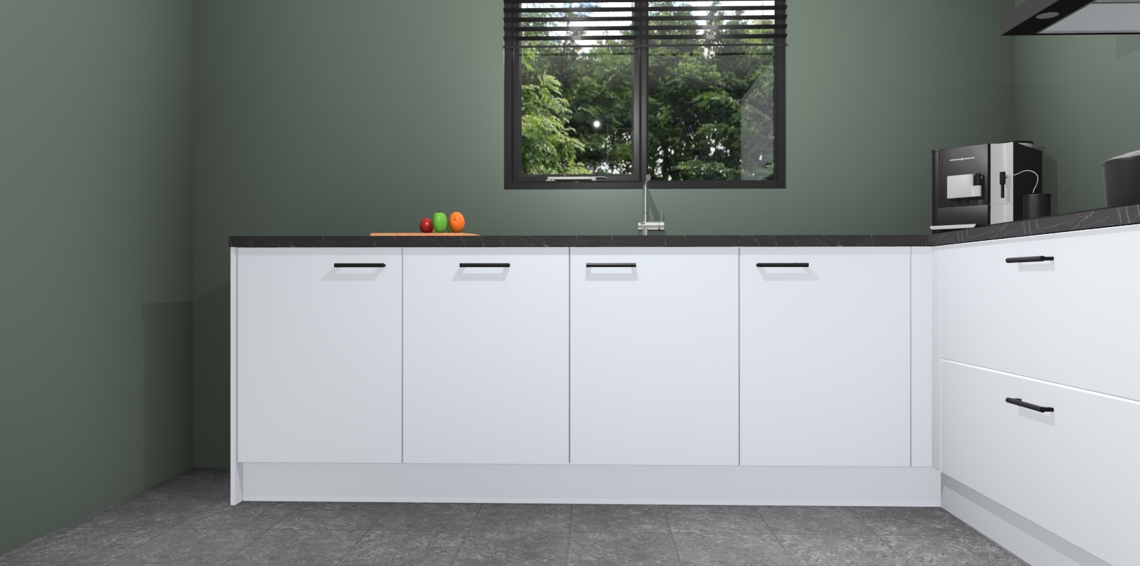 De Sneeuwwitte keuken Porto heeft 5 ingebouwde apparaten - een oven, inductiekookplaat, afzuigkap, vaatwasser en koelkast - waarmee u in een handomdraai heerlijke gerechten bereidt. Soft-close deuren zorgen voor nog meer functionaliteit en gemak. En dit alles voor een onverslaanbaar vaste prijs. En als u nu bestelt, duurt de levering maar 7 weken! Wat nog ongelooflijker is, is dat onze kasten voor gemonteerd worden geleverd.