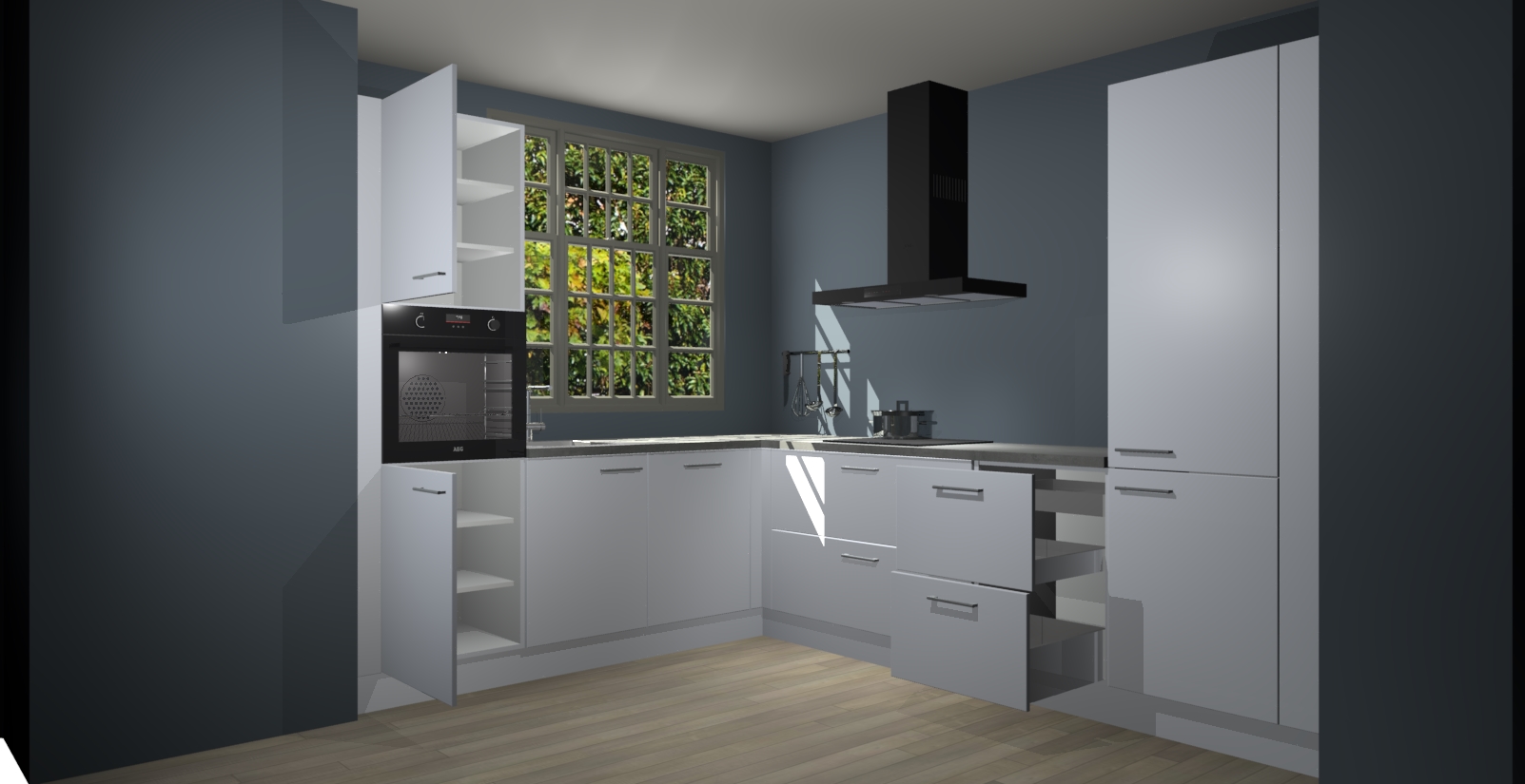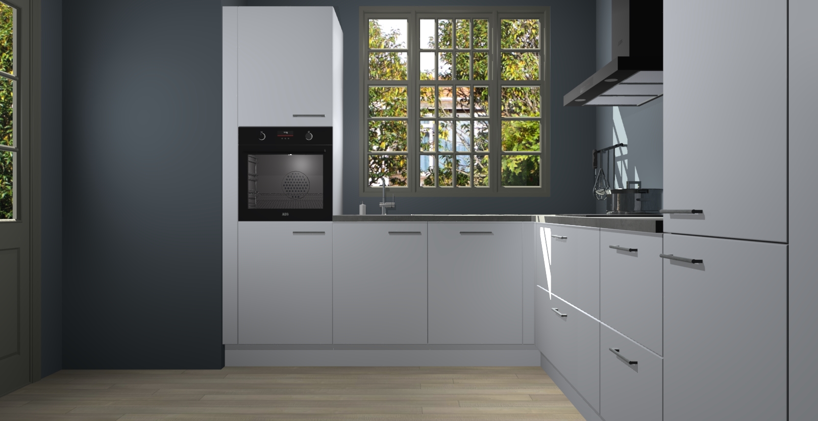 Met een modern, tijdloos design en ruime opslagruimte, zult u zich in no-time thuis voelen in uw nieuwe keuken. Uw leven wordt eenvoudiger met de soft-close deuren die voor het ultieme stille comfort zorgen - geen geluid dat u stoort terwijl u kookt. Ook is de keuken voorzien van 5 ingebouwde apparaten: een oven, inductie kookplaat, afzuigkap, vaatwasser en koelkast. Deze kunnen gemakkelijk na bestelling worden bijgewerkt naar AEG - waardoor uw luxe ervaring compleet is.