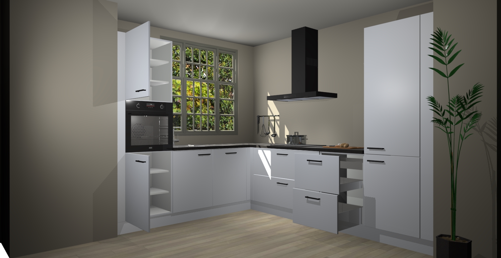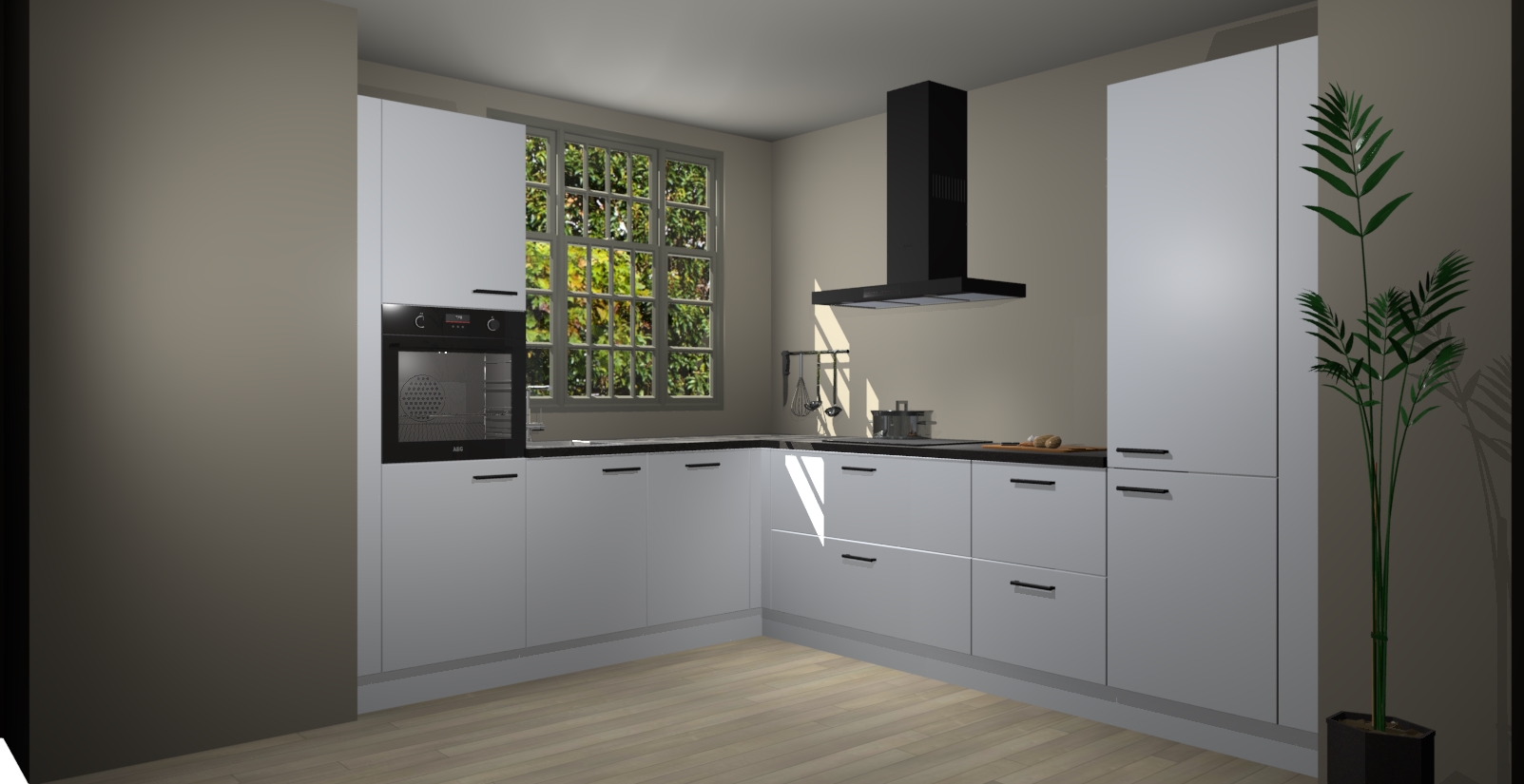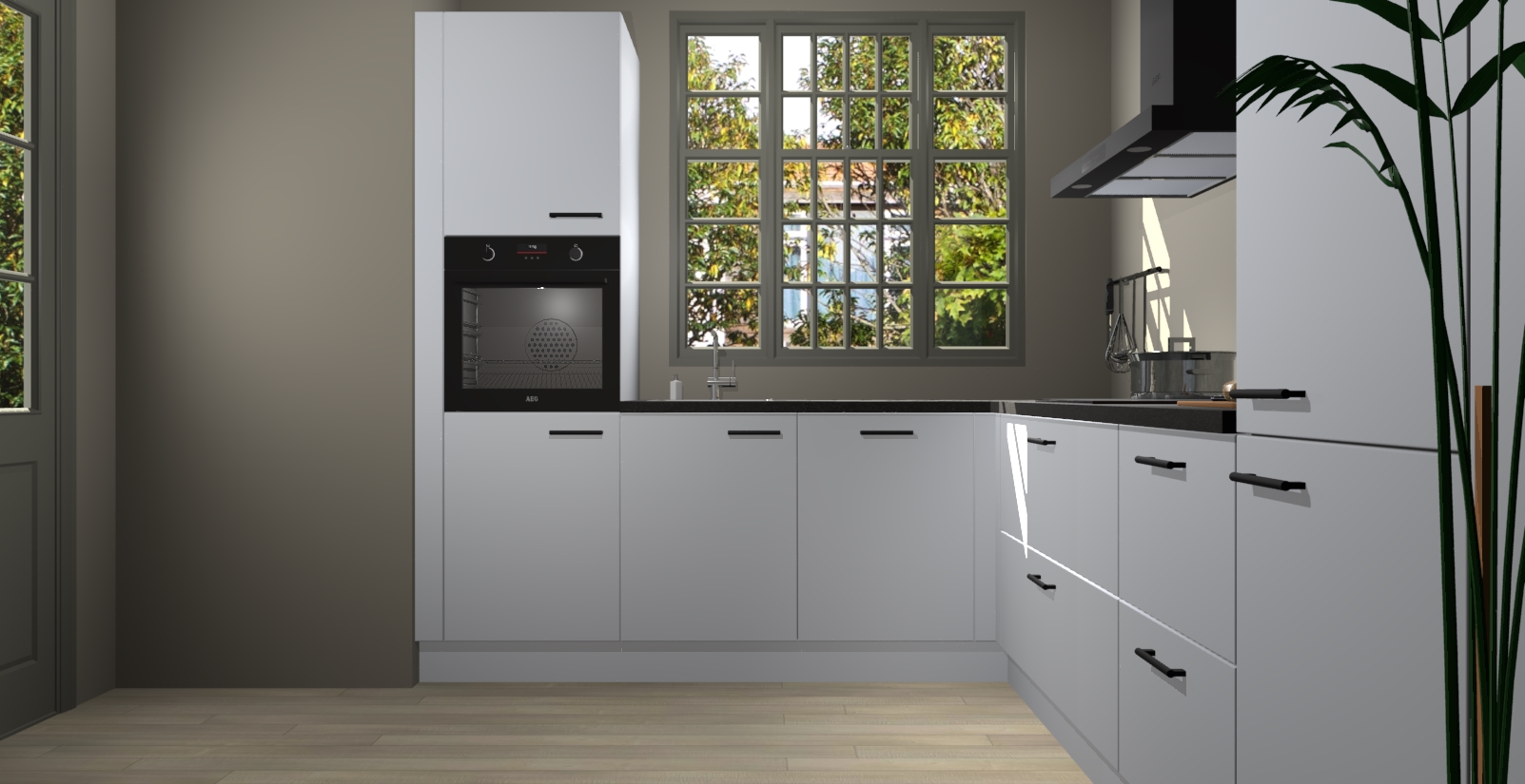 Met een modern, tijdloos design en ruime opslagruimte, zult u zich in no-time thuis voelen in uw nieuwe keuken. Uw leven wordt eenvoudiger met de soft-close deuren die voor het ultieme stille comfort zorgen - geen geluid dat u stoort terwijl u kookt. Ook is de keuken voorzien van 5 ingebouwde apparaten: een oven, inductie kookplaat, afzuigkap, vaatwasser en koelkast. Deze kunnen gemakkelijk na bestelling worden bijgewerkt naar AEG - waardoor uw luxe ervaring compleet is.