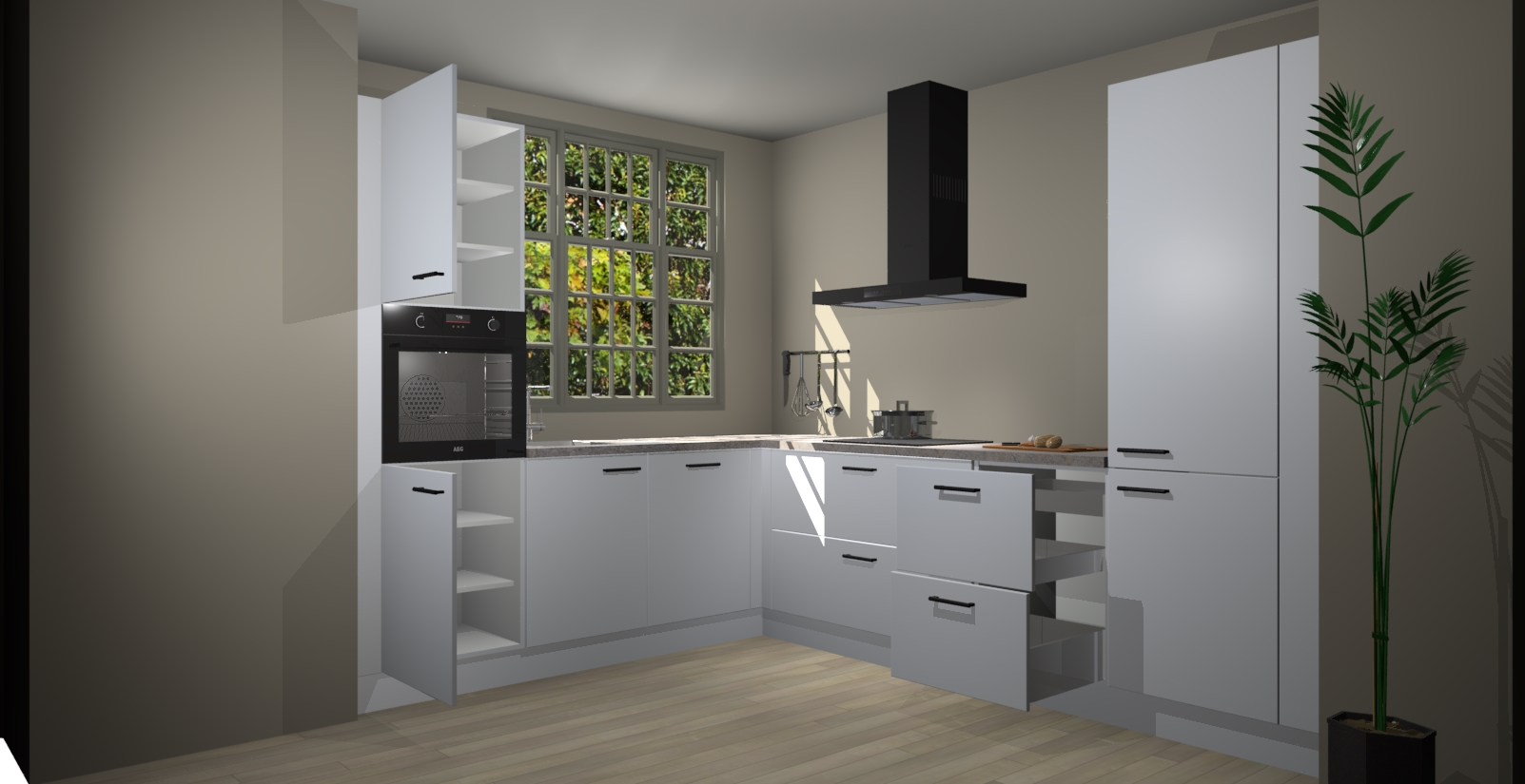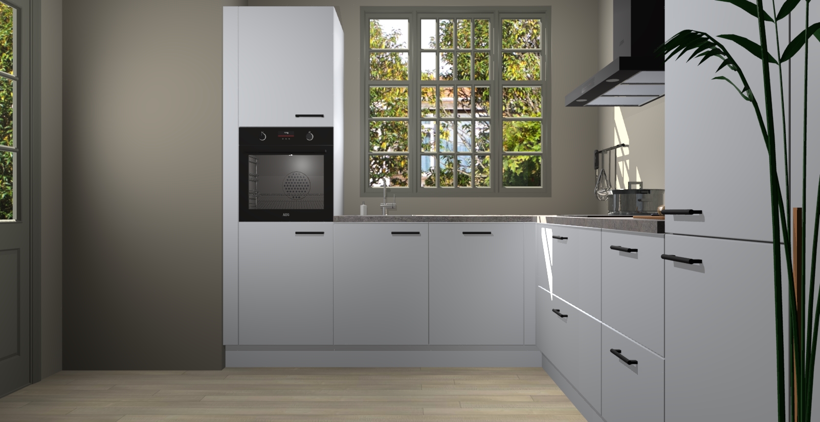 Met een modern, tijdloos design en ruime opslagruimte, zult u zich in no-time thuis voelen in uw nieuwe keuken. Uw leven wordt eenvoudiger met de soft-close deuren die voor het ultieme stille comfort zorgen - geen geluid dat u stoort terwijl u kookt. Ook is de keuken voorzien van 5 ingebouwde apparaten: een oven, inductie kookplaat, afzuigkap, vaatwasser en koelkast. Deze kunnen gemakkelijk na bestelling worden bijgewerkt naar AEG - waardoor uw luxe ervaring compleet is.