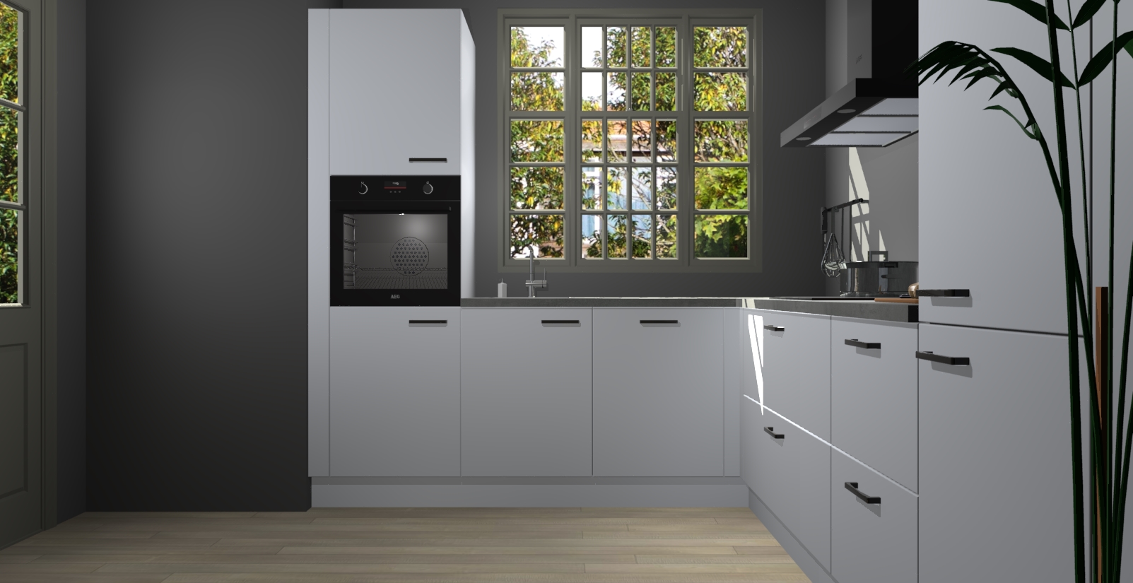 Met een modern, tijdloos design en ruime opslagruimte, zult u zich in no-time thuis voelen in uw nieuwe keuken. Uw leven wordt eenvoudiger met de soft-close deuren die voor het ultieme stille comfort zorgen - geen geluid dat u stoort terwijl u kookt. Ook is de keuken voorzien van 5 ingebouwde apparaten: een oven, inductie kookplaat, afzuigkap, vaatwasser en koelkast. Deze kunnen gemakkelijk na bestelling worden bijgewerkt naar AEG - waardoor uw luxe ervaring compleet is.