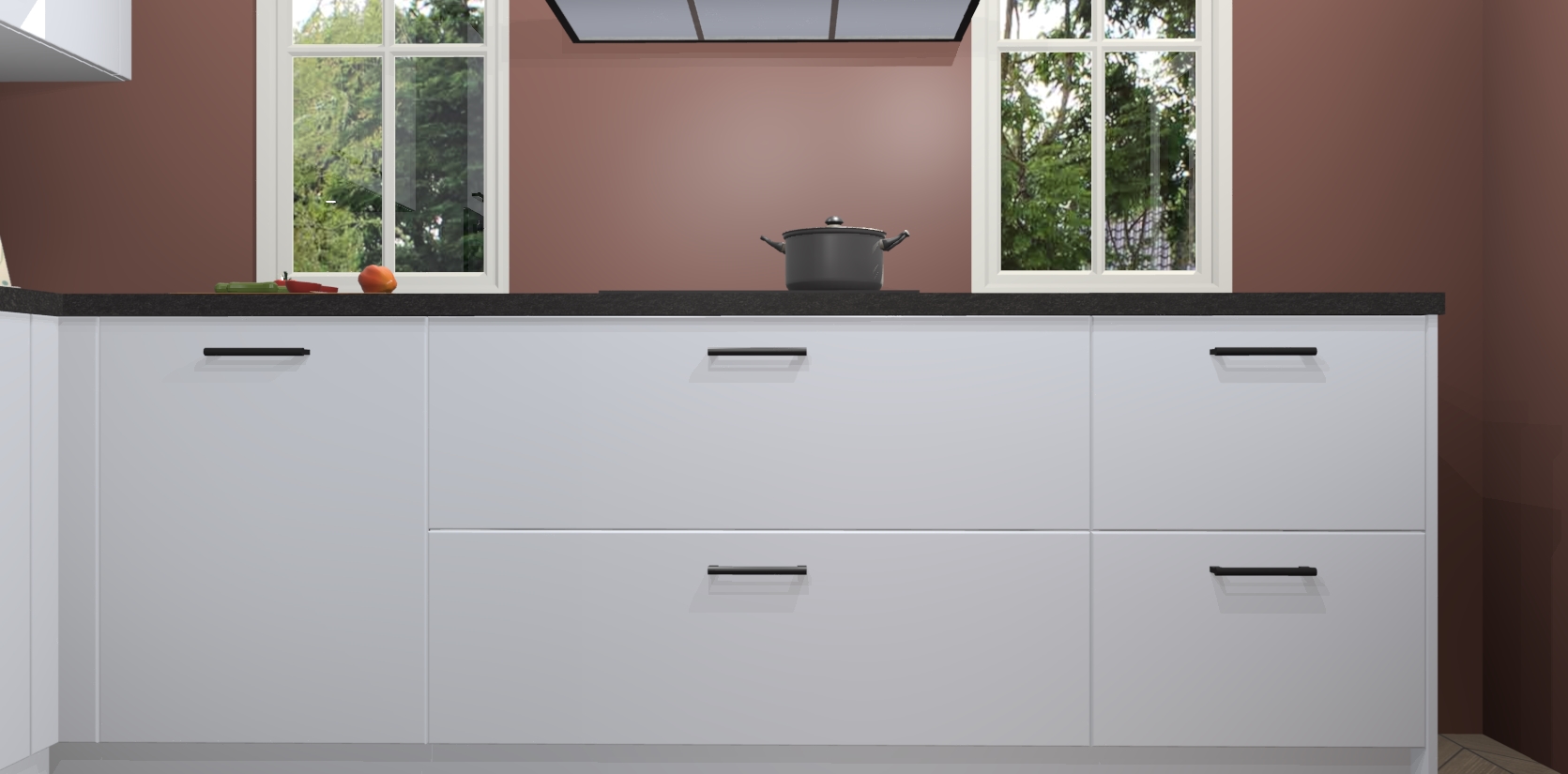 In deze box zijn alle kleuren verzameld van de deuren en werkbladen. Vraag de gratis kleurenbox aan en kijk thuis rustig verder!