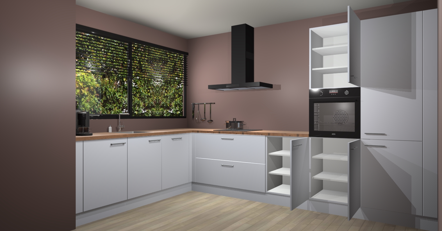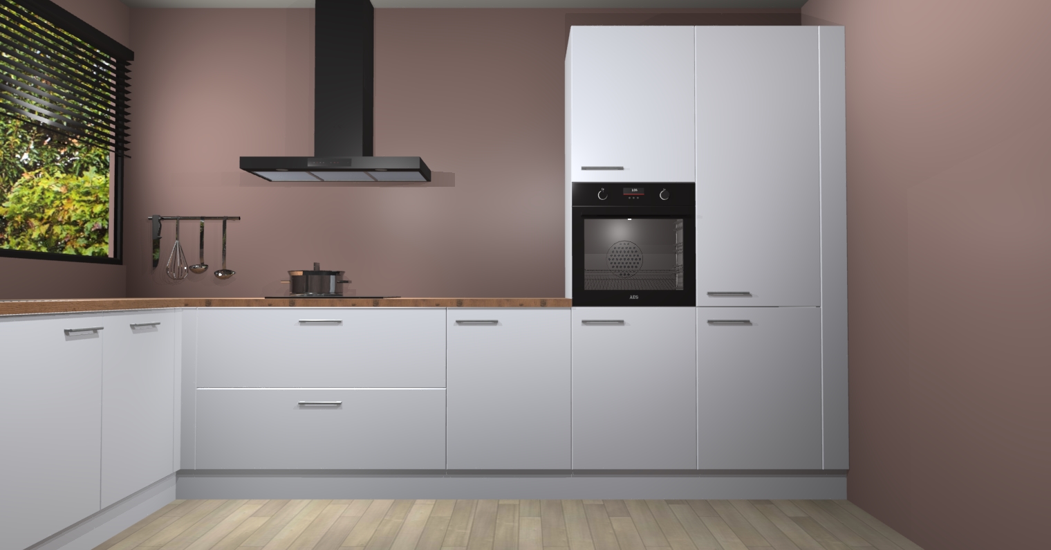 Met een modern, tijdloos design en ruime opslagruimte, zult u zich in no-time thuis voelen in uw nieuwe keuken. Uw leven wordt eenvoudiger met de soft-close deuren die voor het ultieme stille comfort zorgen - geen geluid dat u stoort terwijl u kookt. Ook is de keuken voorzien van 5 ingebouwde apparaten: een oven, inductie kookplaat, afzuigkap, vaatwasser en koelkast. Deze kunnen gemakkelijk na bestelling worden bijgewerkt naar AEG - waardoor uw luxe ervaring compleet is.