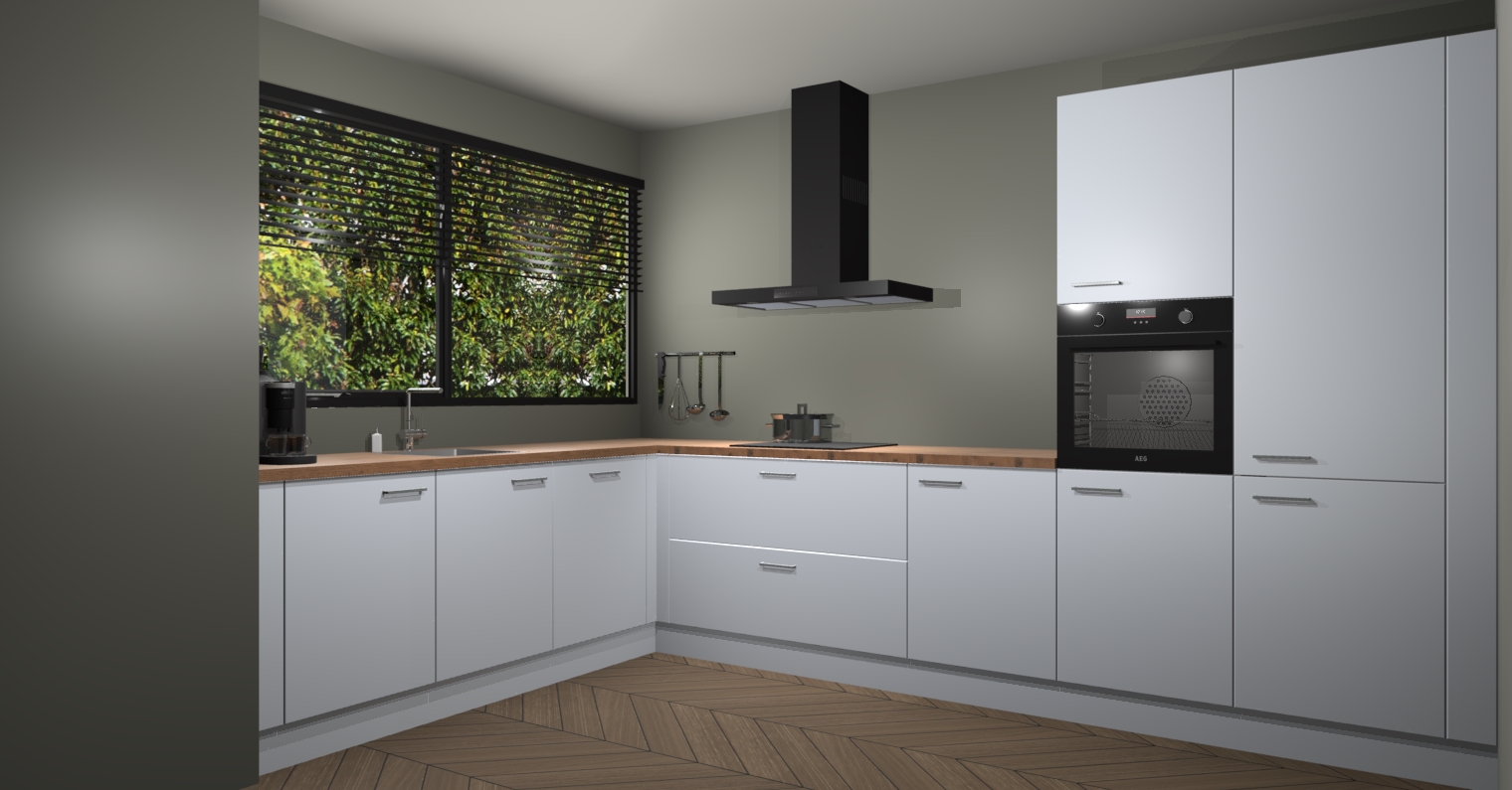 Met een modern, tijdloos design en ruime opslagruimte, zult u zich in no-time thuis voelen in uw nieuwe keuken. Uw leven wordt eenvoudiger met de soft-close deuren die voor het ultieme stille comfort zorgen - geen geluid dat u stoort terwijl u kookt. Ook is de keuken voorzien van 5 ingebouwde apparaten: een oven, inductie kookplaat, afzuigkap, vaatwasser en koelkast. Deze kunnen gemakkelijk na bestelling worden bijgewerkt naar AEG - waardoor uw luxe ervaring compleet is.