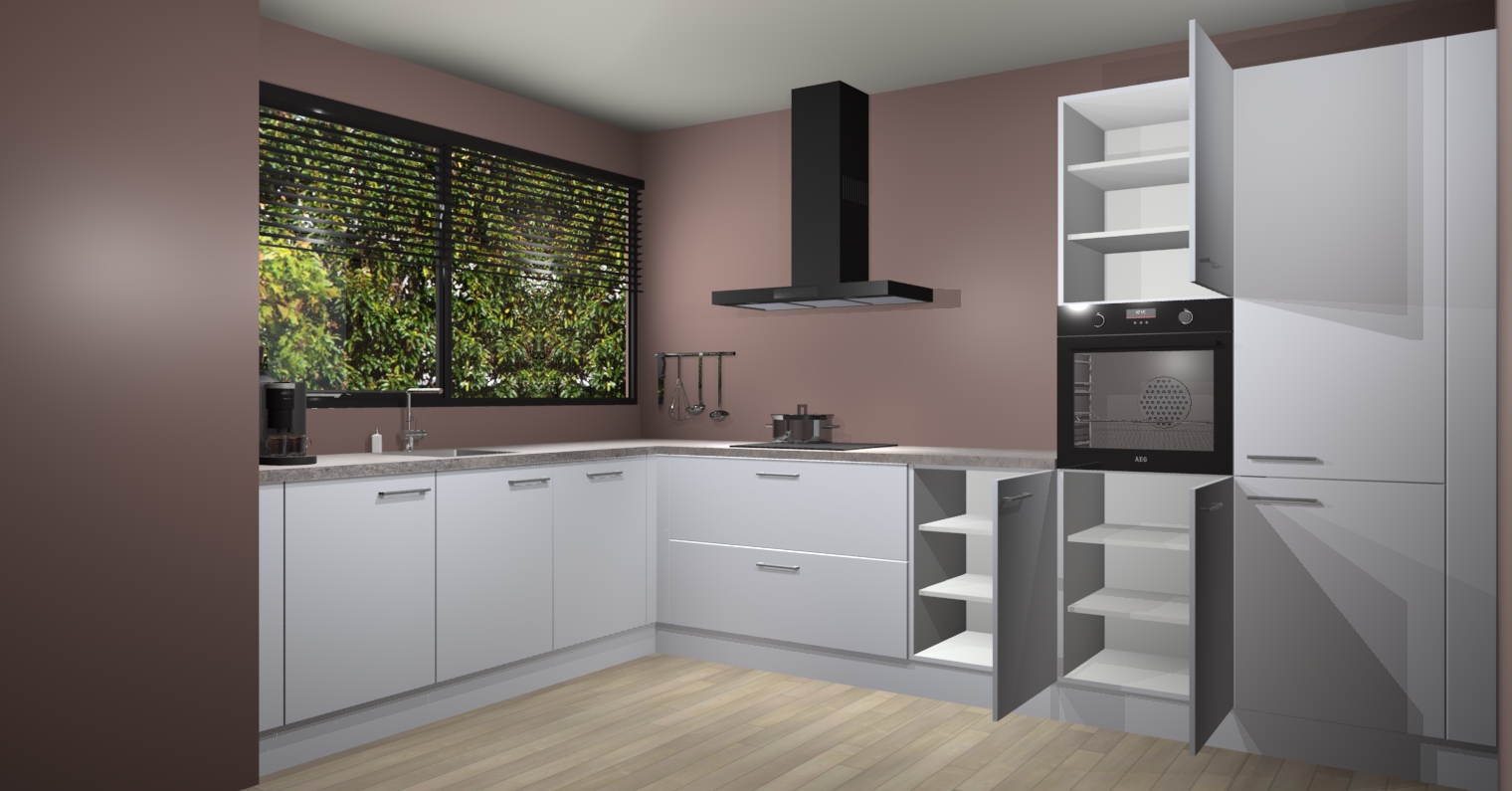 Met een modern, tijdloos design en ruime opslagruimte, zult u zich in no-time thuis voelen in uw nieuwe keuken. Uw leven wordt eenvoudiger met de soft-close deuren die voor het ultieme stille comfort zorgen - geen geluid dat u stoort terwijl u kookt. Ook is de keuken voorzien van 5 ingebouwde apparaten: een oven, inductie kookplaat, afzuigkap, vaatwasser en koelkast. Deze kunnen gemakkelijk na bestelling worden bijgewerkt naar AEG - waardoor uw luxe ervaring compleet is.
