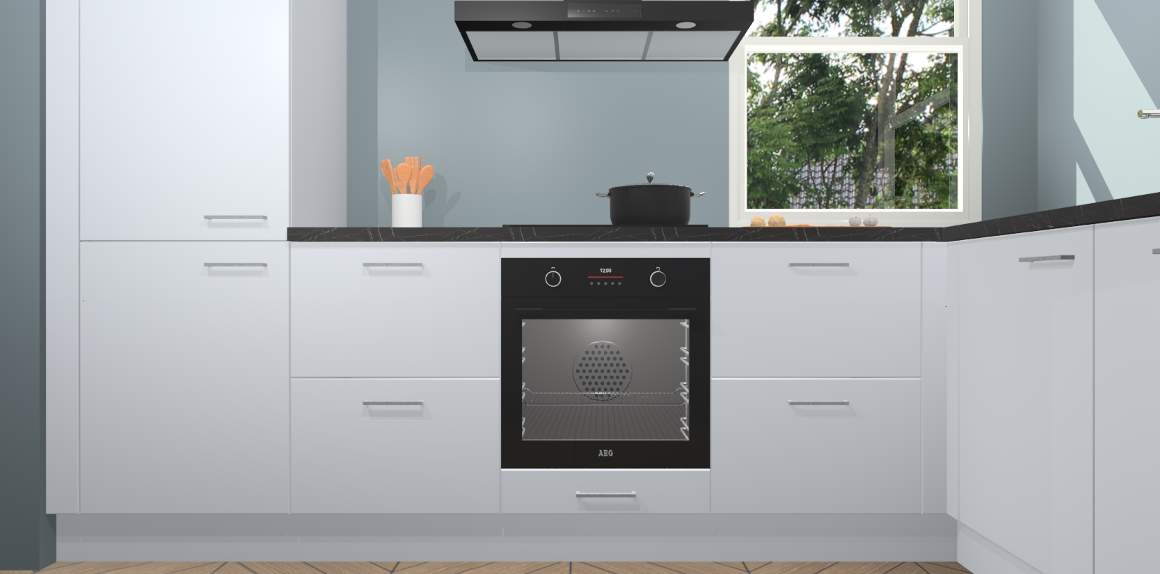 Wat maakt deze keuken zo bijzonder? Ten eerste geeft het houten werkblad uw ruimte een onmiskenbaar klassieke uitstraling. De natuurlijke afwerking roept warmte en elegantie op die nooit uit de mode zullen raken. Bovendien is het gemakkelijk schoon te houden en te onderhouden, zodat je er jarenlang plezier van kunt hebben. Als u op zoek bent naar extra gemak in uw keuken, dan heeft u bij het plaatsen van een bestelling bij ons ook de optie om uw toestellen te upgraden naar AEG-modellen - zo haalt u moderne innovatie van topmerken in apparatentechnologie rechtstreeks in huis.