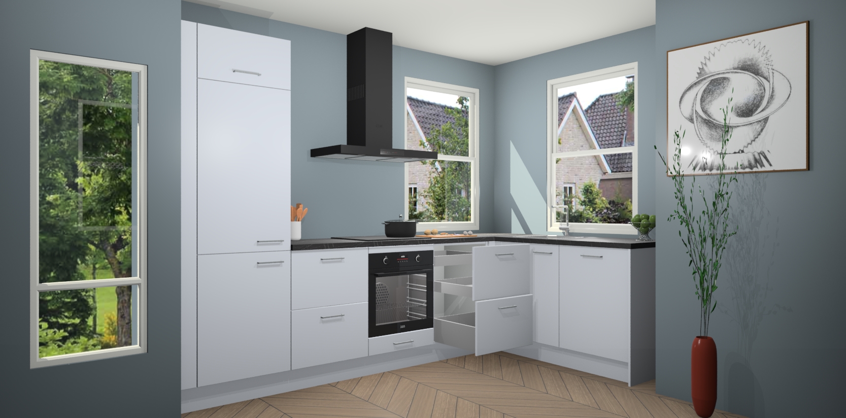 In deze box zijn alle kleuren verzameld van de deuren en werkbladen. Vraag de gratis kleurenbox aan en kijk thuis rustig verder!