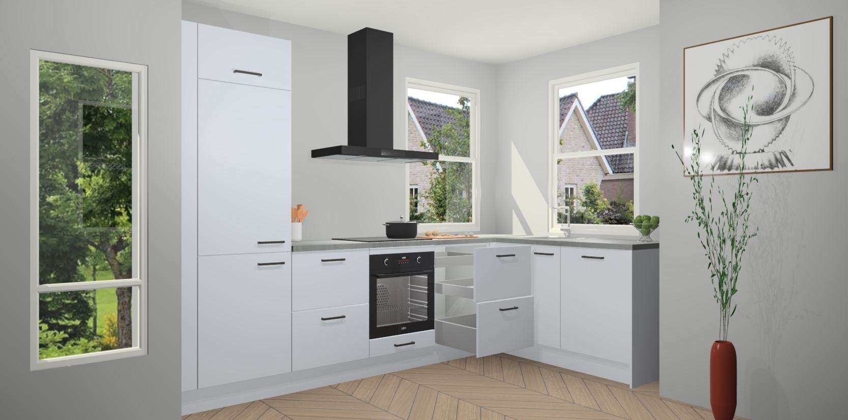 Inclusief plinten, stelpoten en werkblad